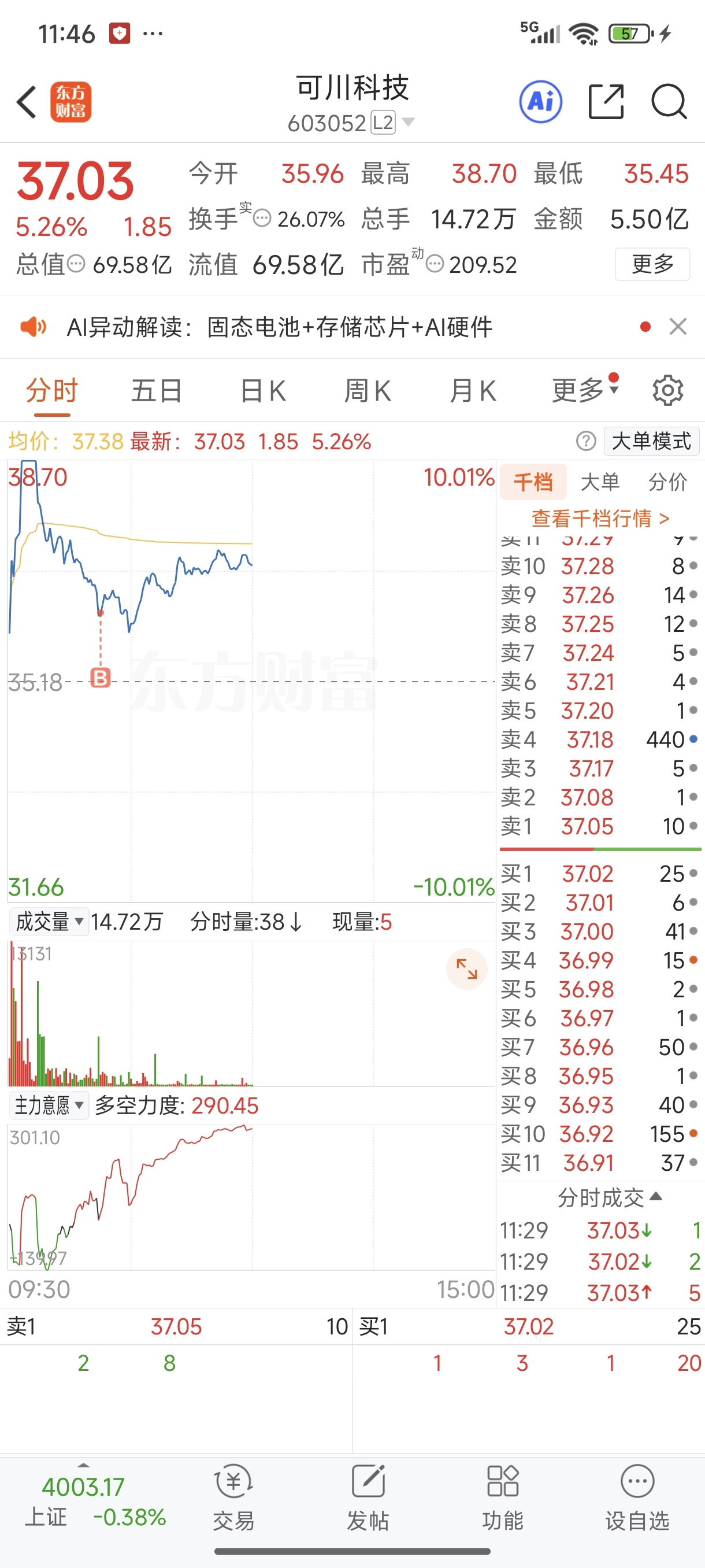 $可川科技(SH603052)$ 喂!!能不能打个回封??你是今天的急先锋啊!拉了几天你这个位置没法出货啊!