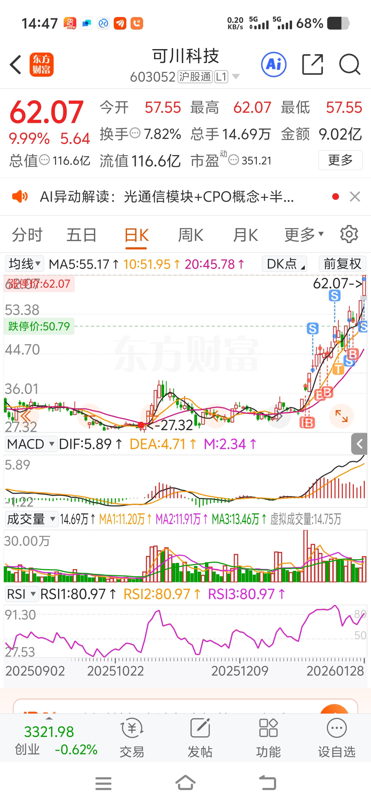 $可川科技(SH603052)$ 37买了一直拿到60,感谢主力的过年红包,再涨也不后悔知足了