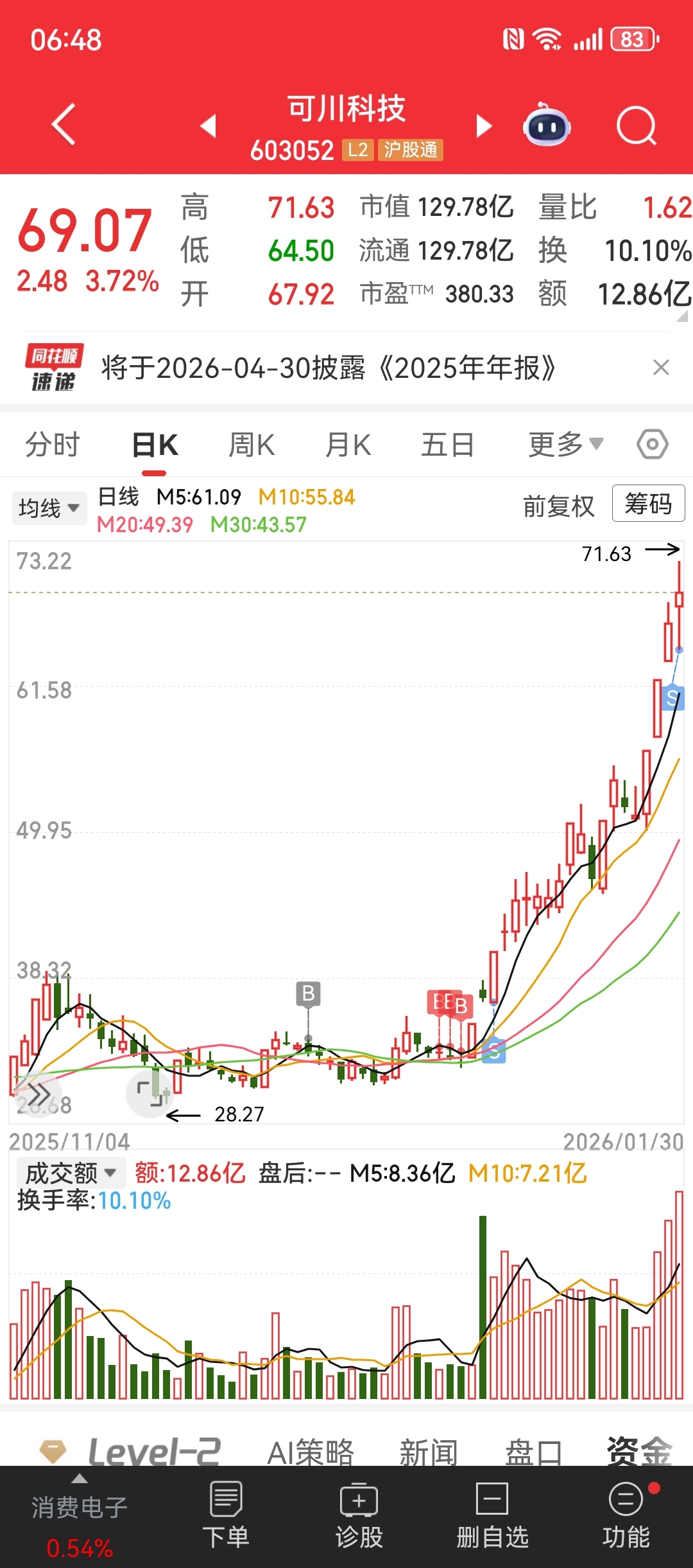 $可川科技(SH603052)$ 每天生活在上涨的恐惧中,今天全丢了