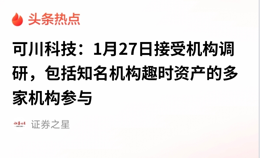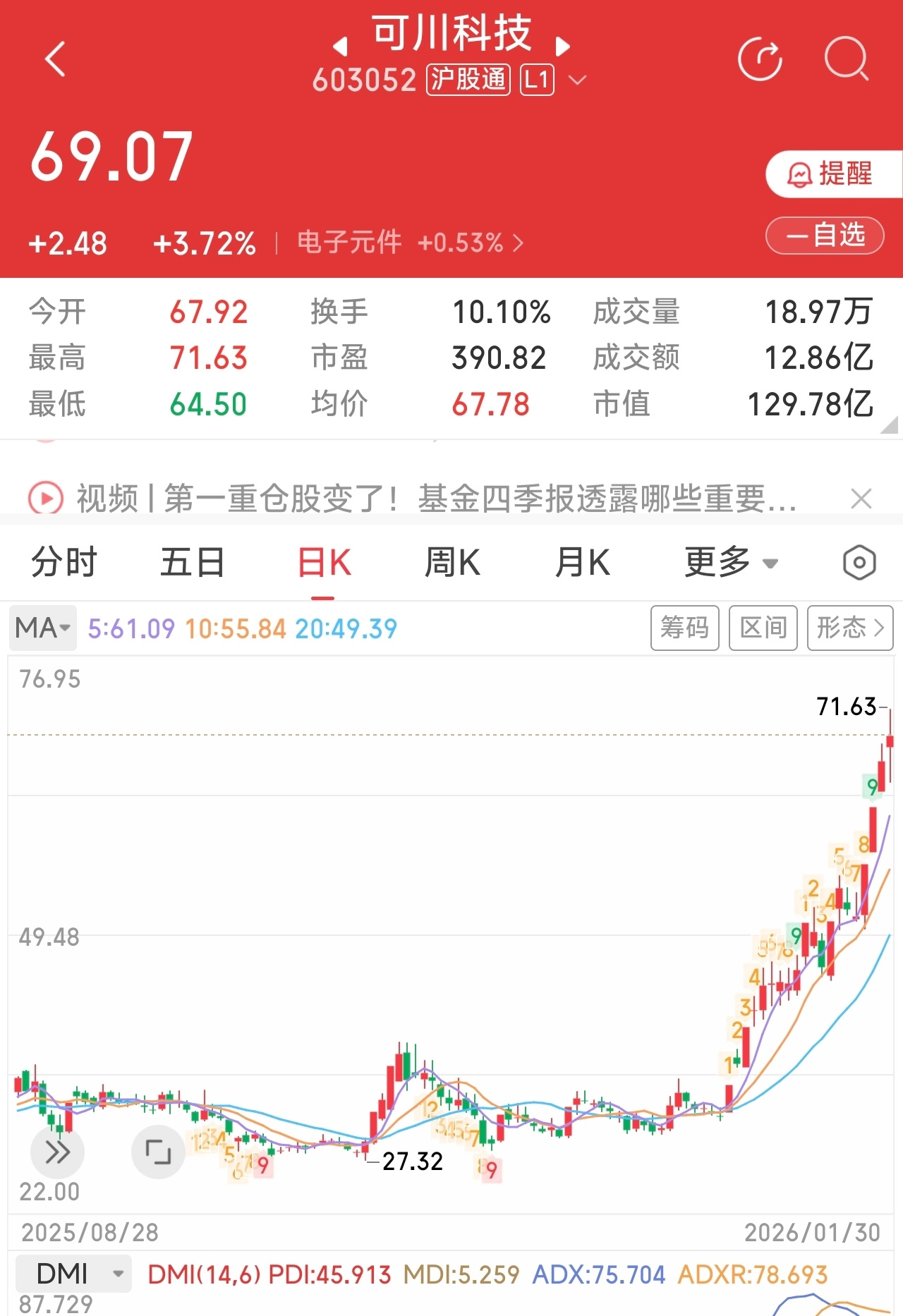 $可川科技(SH603052)$ 已悄然启动一场“跨界突袭”——从鲜少人关注的传统供应商,到半年斩获120%涨幅、跻身2026年1月十大牛股(月涨118.92%)、