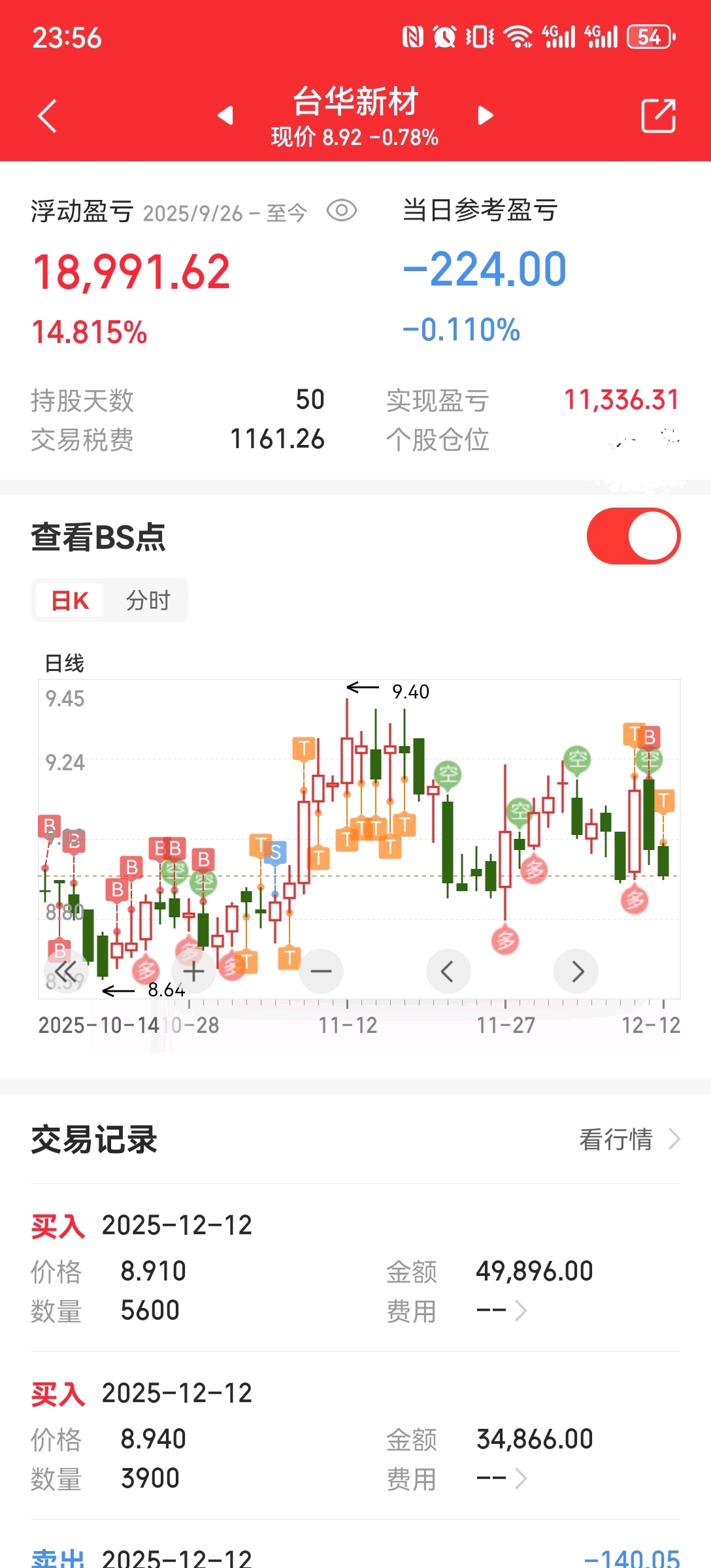 $台华新材(SH603055)$ 你让我感到恶心,最近连T都不想做,拿了这么久,一个像样的阳线都没