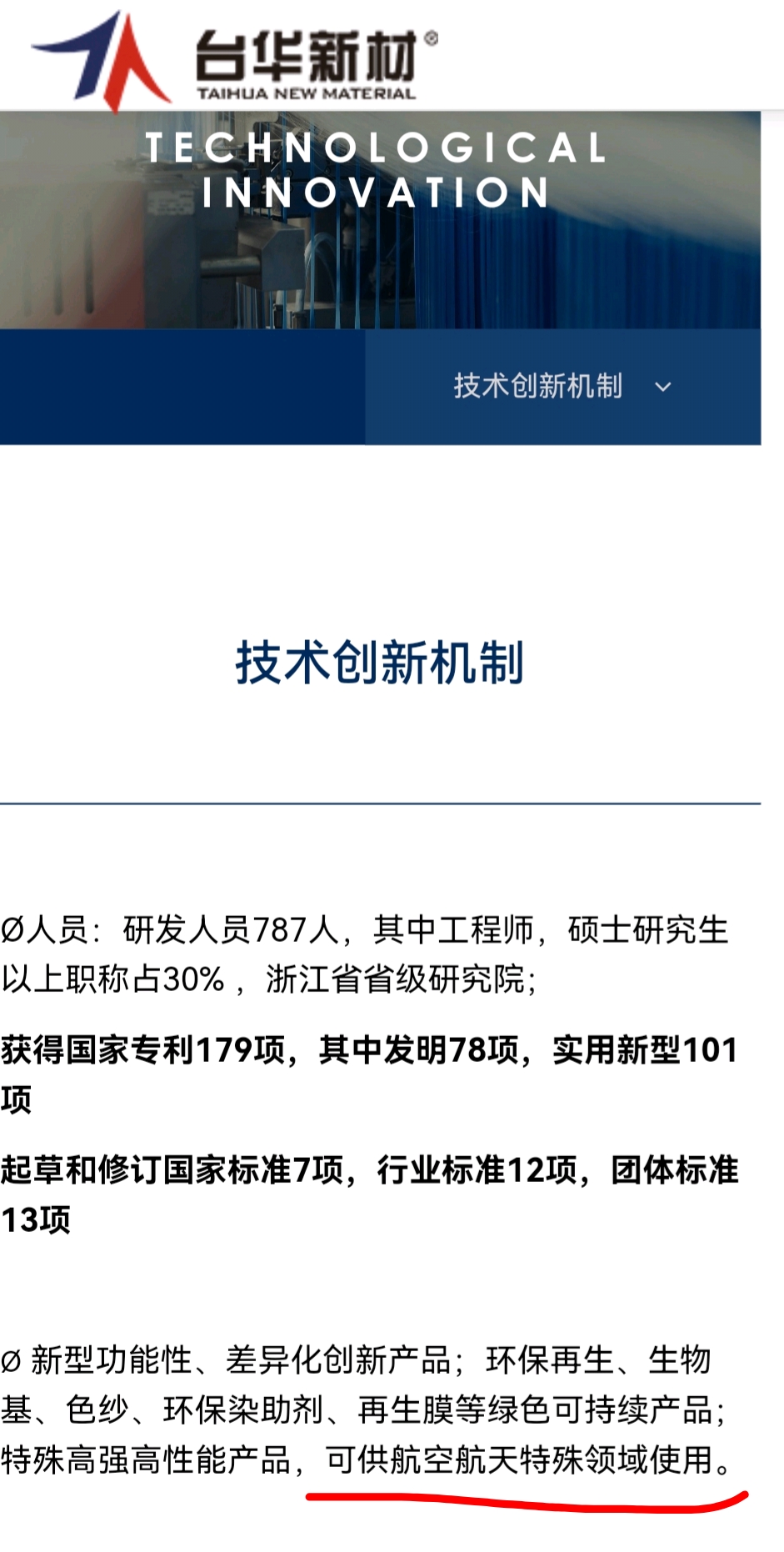 台华新材公司官网信息,其锦纶应用于航空航天领域。