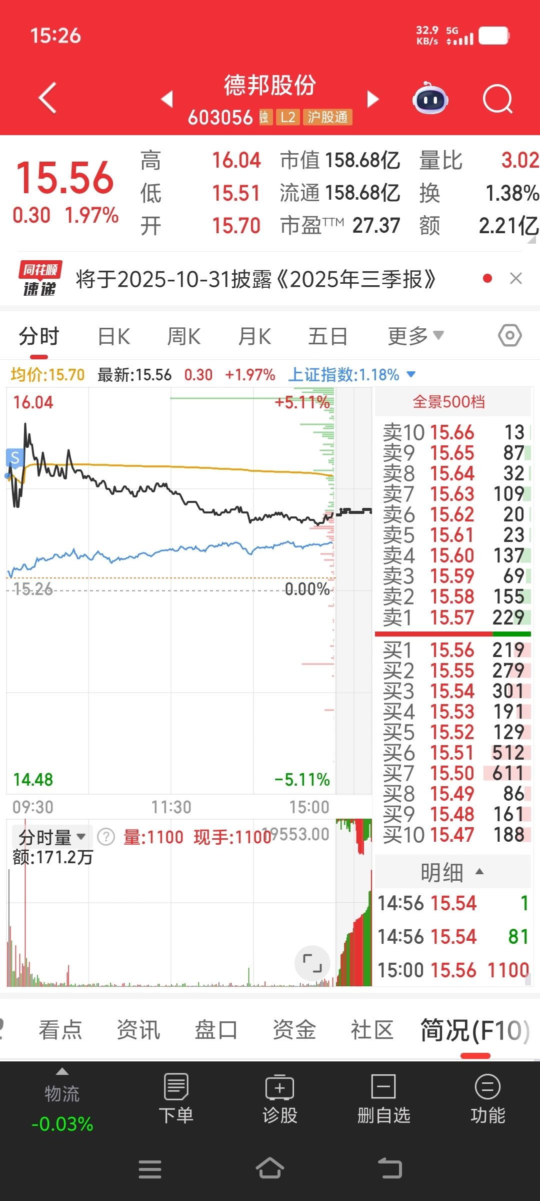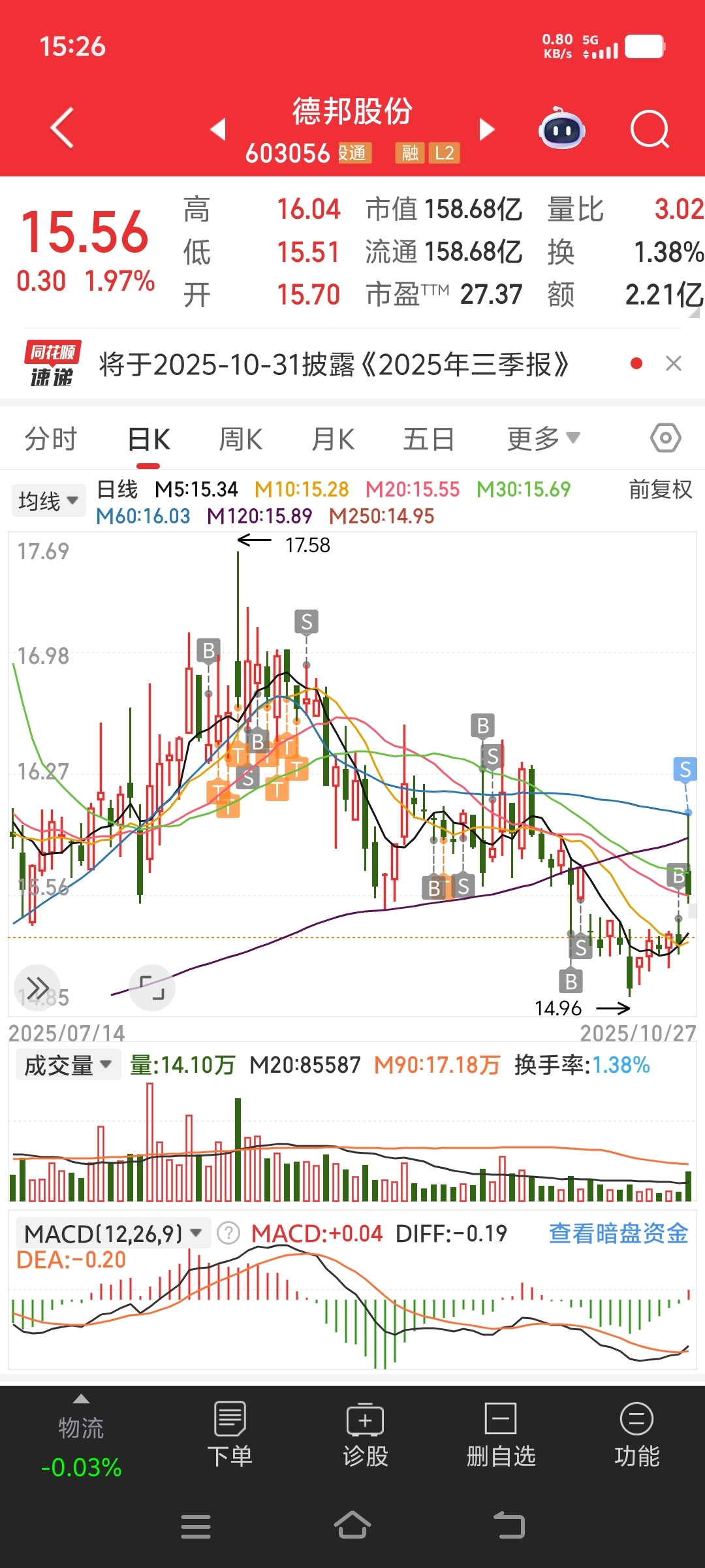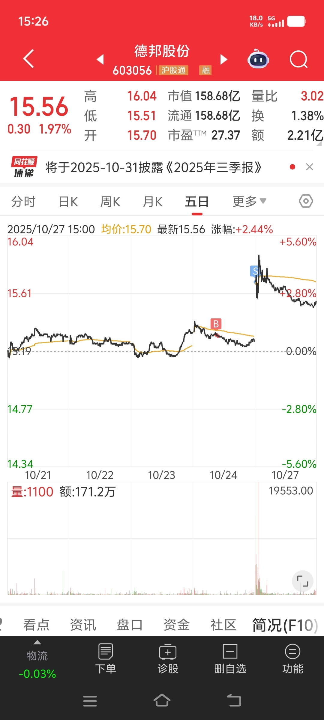 德邦股份又做了个短线都抛了目前是双11期间我也没少买东西
