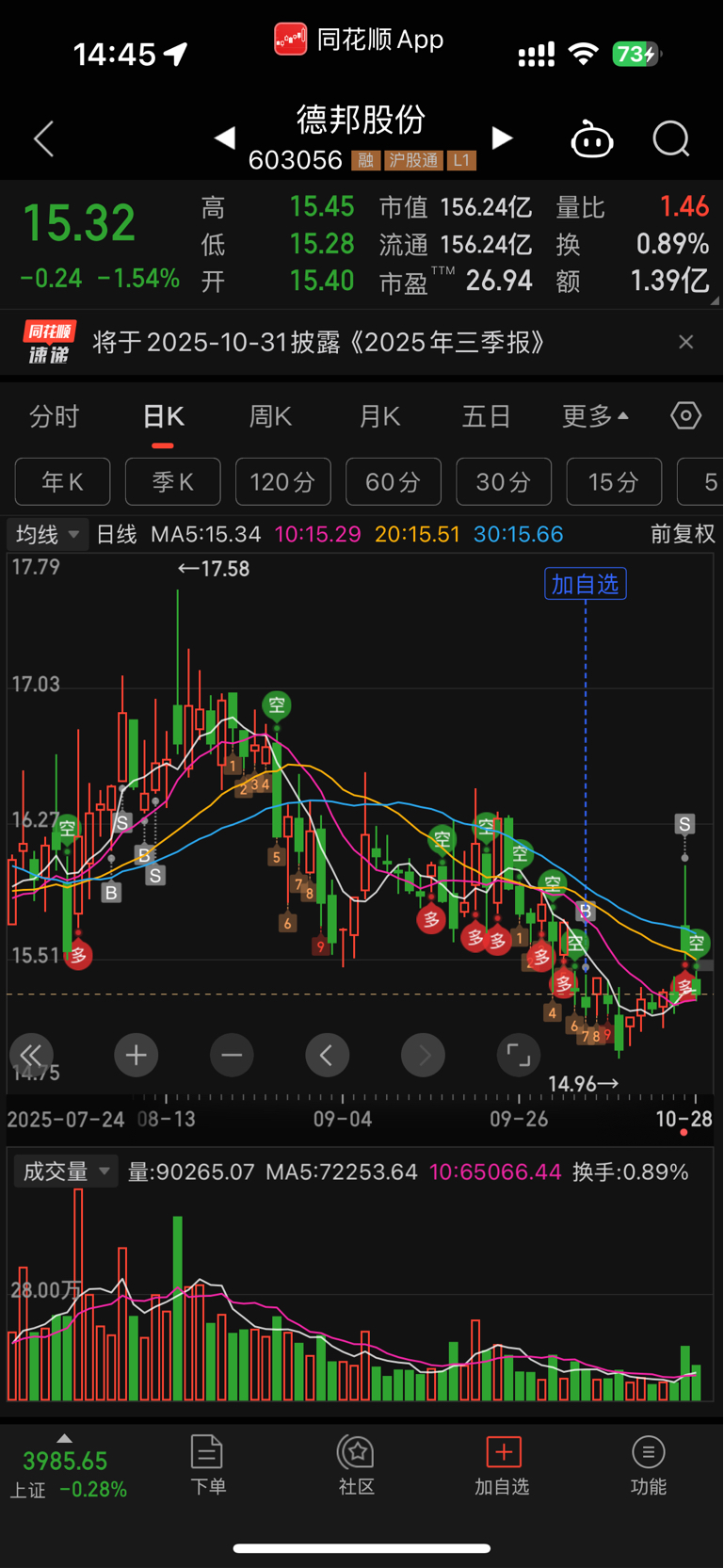 $德邦股份(SH603056)$ 昨天出的,今天接回来。几毛差价爽歪歪!
