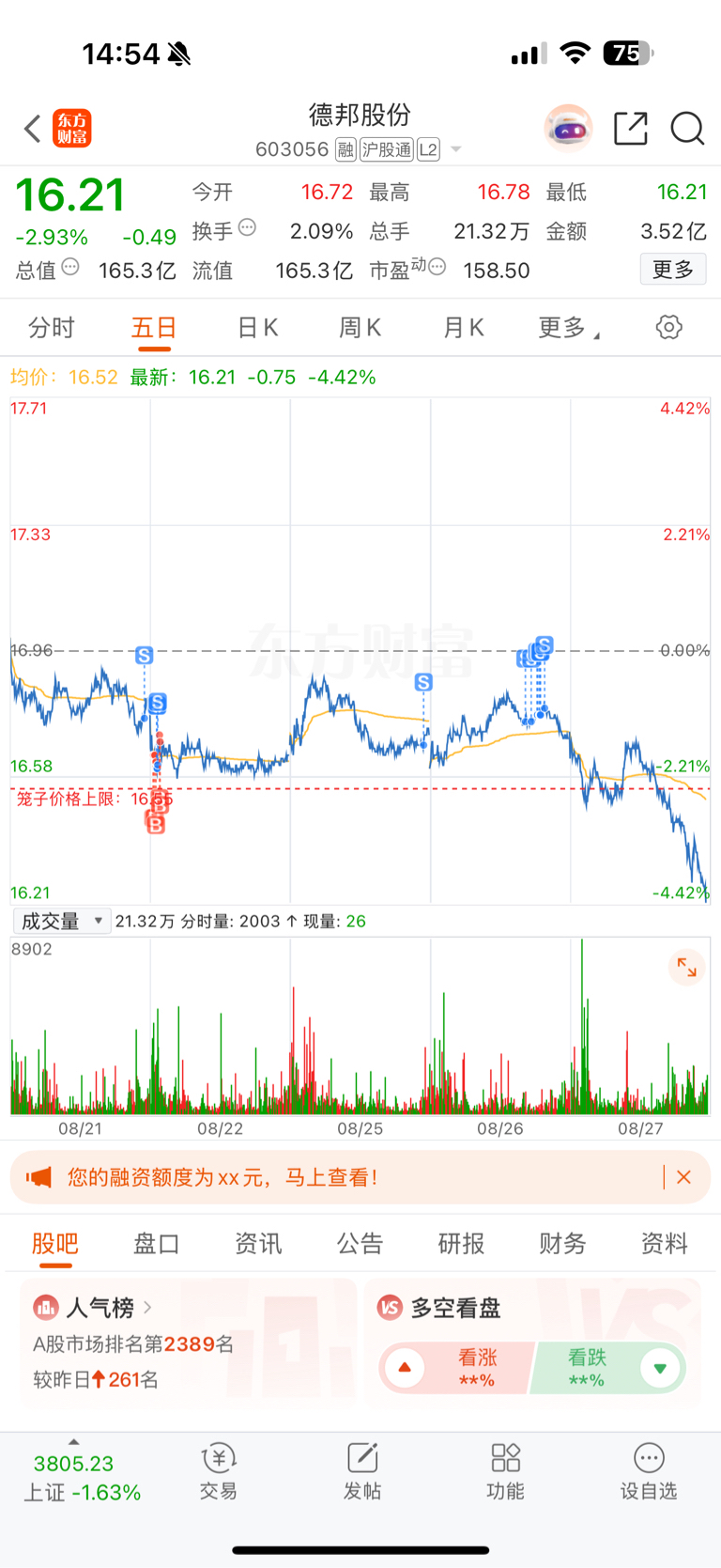 $德邦股份(SH603056)$ 哈哈哈 早上我说什么来着,信小谢的买进来又被套了吧,他一p图,你们还真买进来啊。这么傻的啊?他为什么早上每天发帖说自己买了,就是骗散户接盘的。半个月前我就说了 他早上在一天 当天必跌。幸亏我前几天16.8清仓了,现在都信我了吗