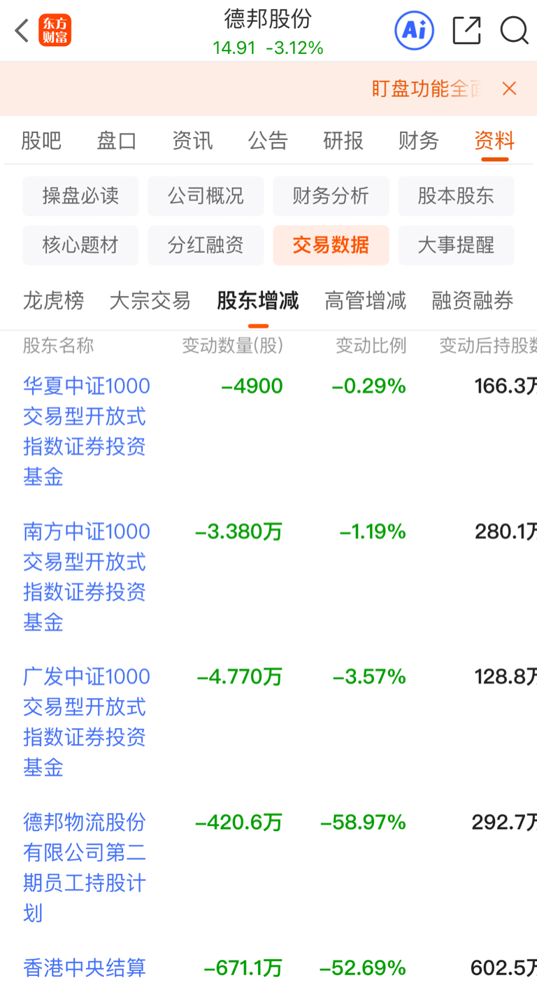 $德邦股份(SH603056)$ 机构这是要撤退了?