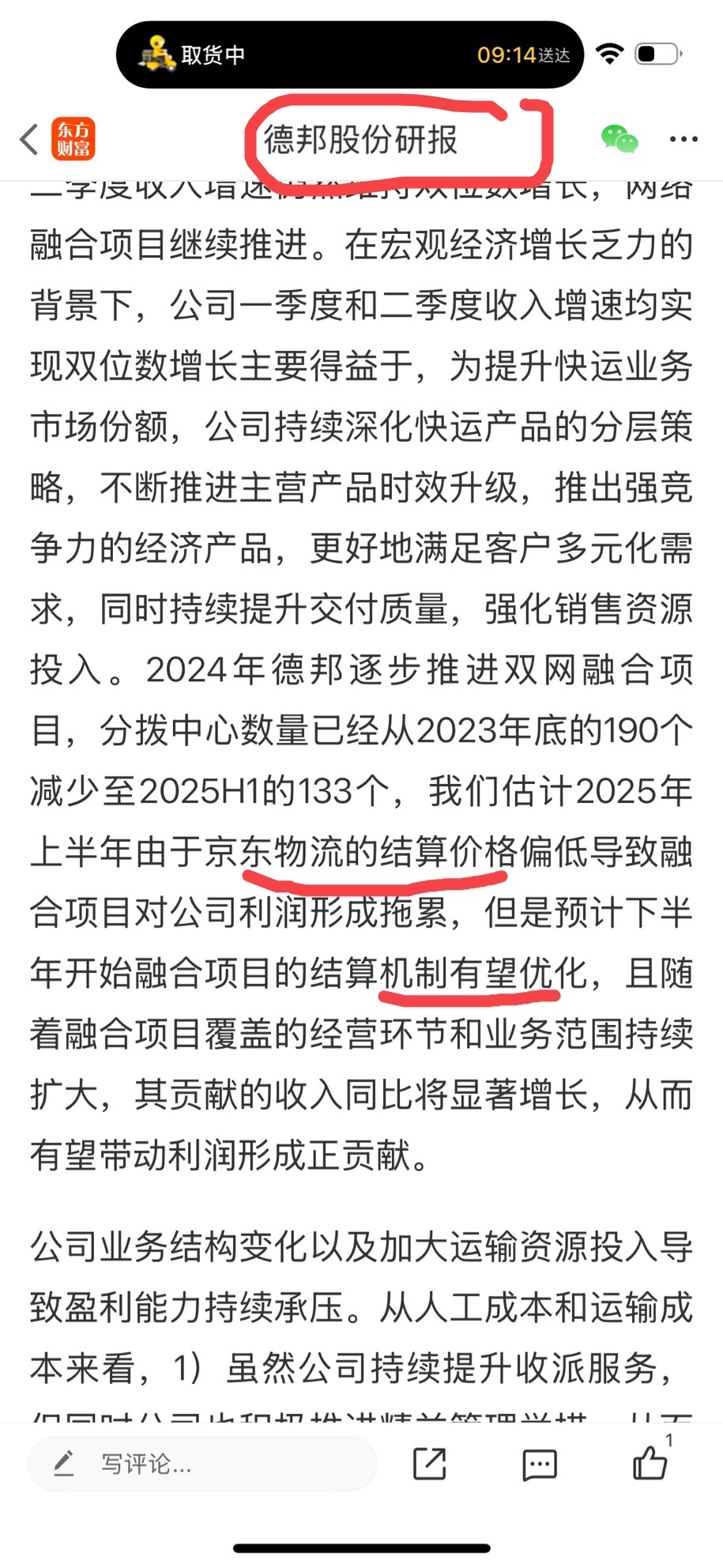 德邦和京东结算价格本身一直以来都低,只是2025年运输成本和人力成本等异常,所以还涉嫌继续动成本,所以直接亏损了。