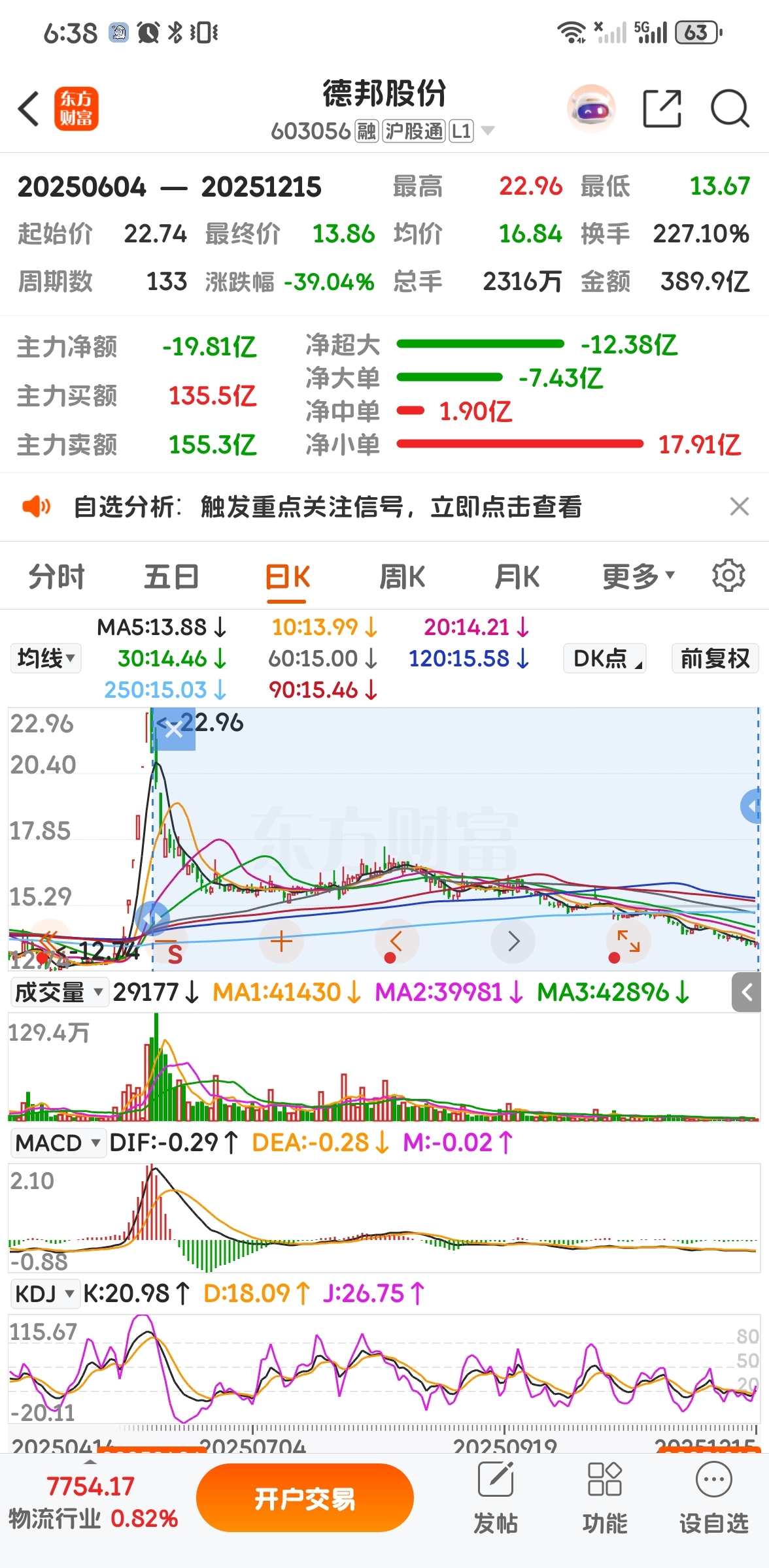$德邦股份(SH603056)$ 可恶啊最高点下来39%了要涨65%才能回到最高点