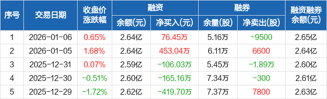 德邦股份:融资净买入76.45万元,融资余额2.64亿元(01-06)