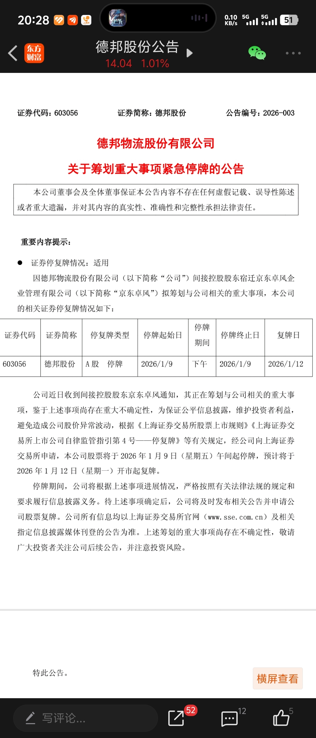 私有化主动退市?之前就说德邦股份要私有化退市的。京东都持股80%了。而且这个公告