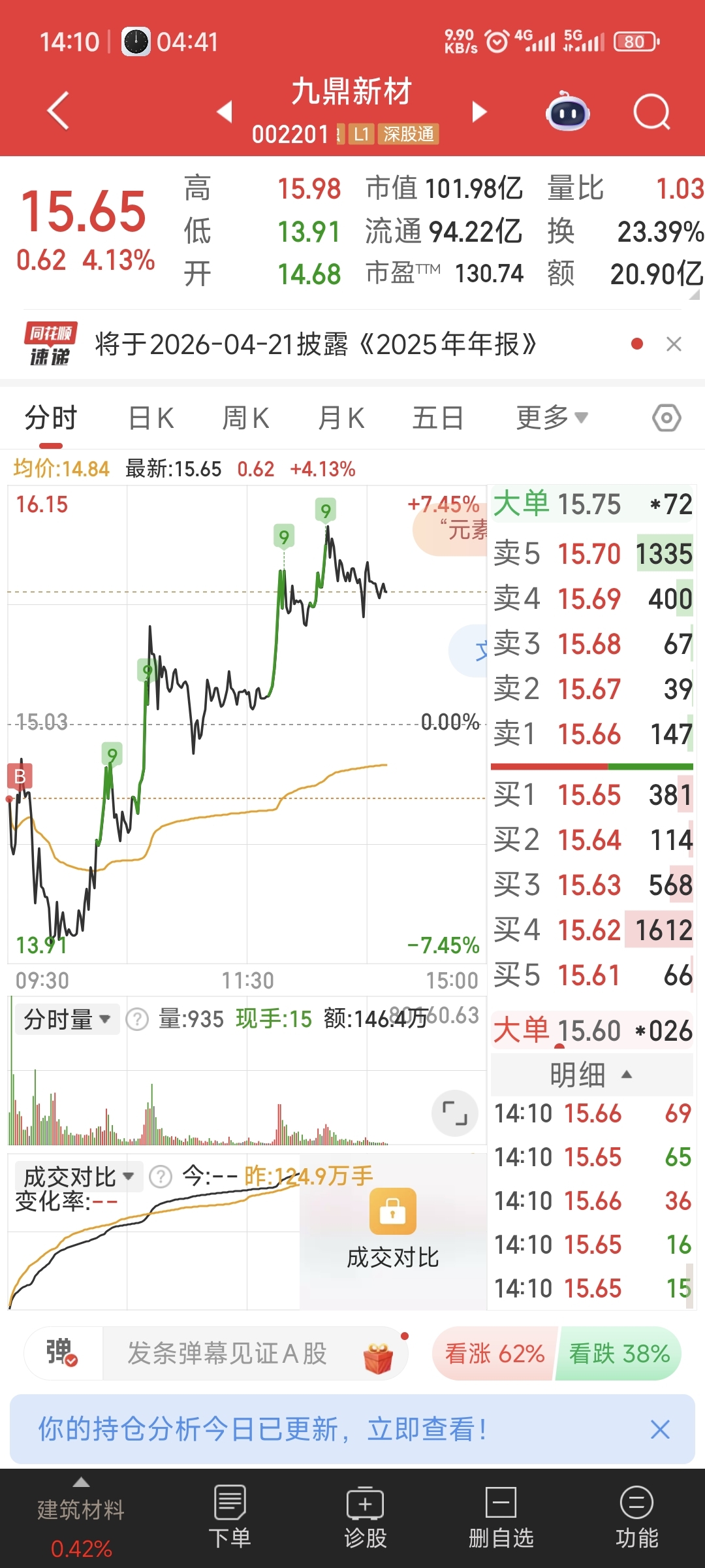 九鼎新材定错价了,本来定跌停价的,结果定成涨停价,买入一手无心插柳柳成荫。还有国