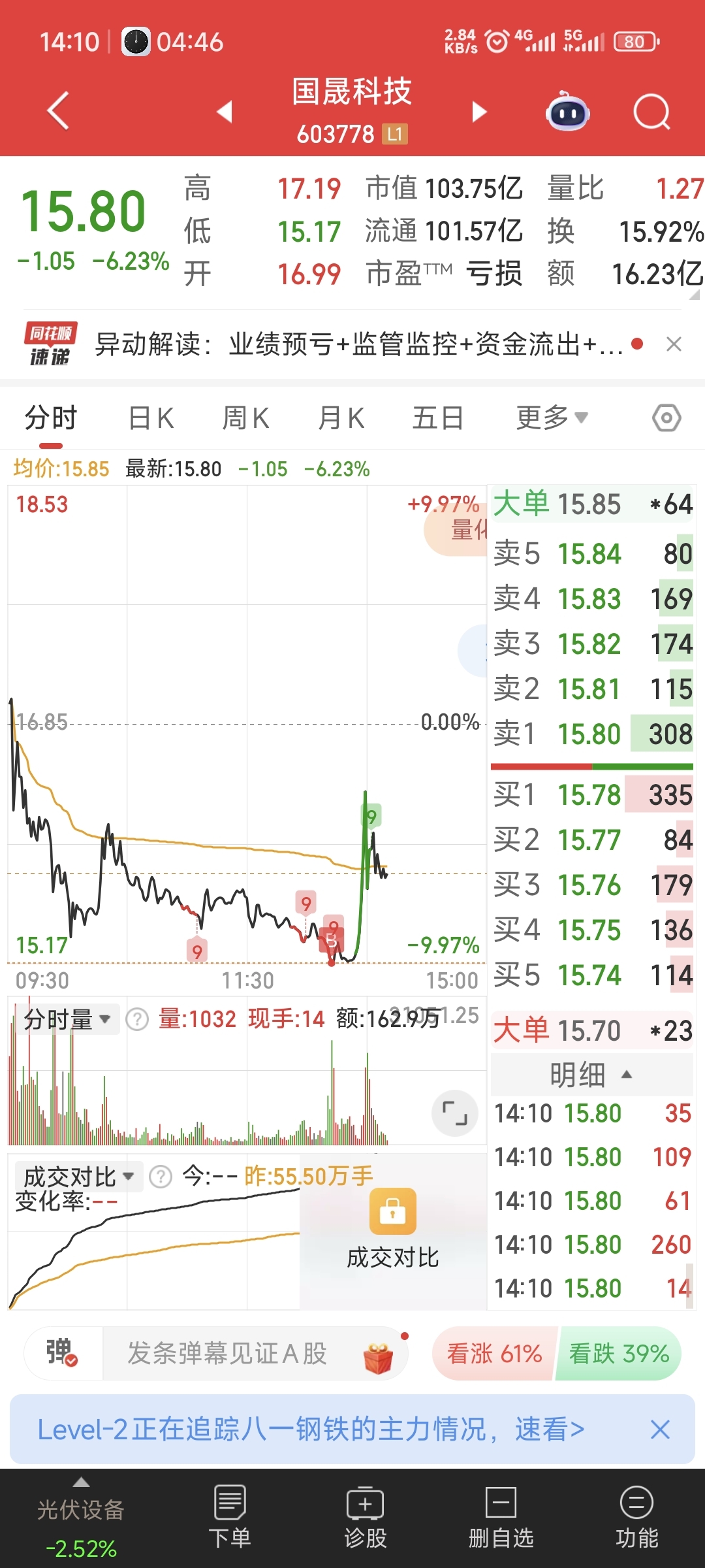 无心插柳柳成荫。还有国晟科技,本来就买一手,昨天晚上两个时间段阴差阳错又订了一手进去,买了两手