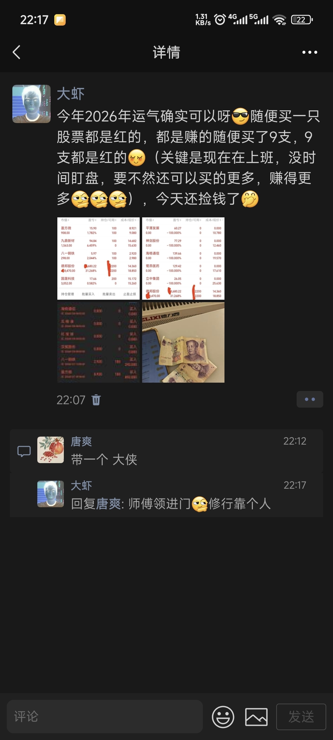 $德邦股份(SH603056)$ 今年2026年运气确实可以呀,随便买一只股票都是红的,都是赚的,随便买了9支,9支都是红的