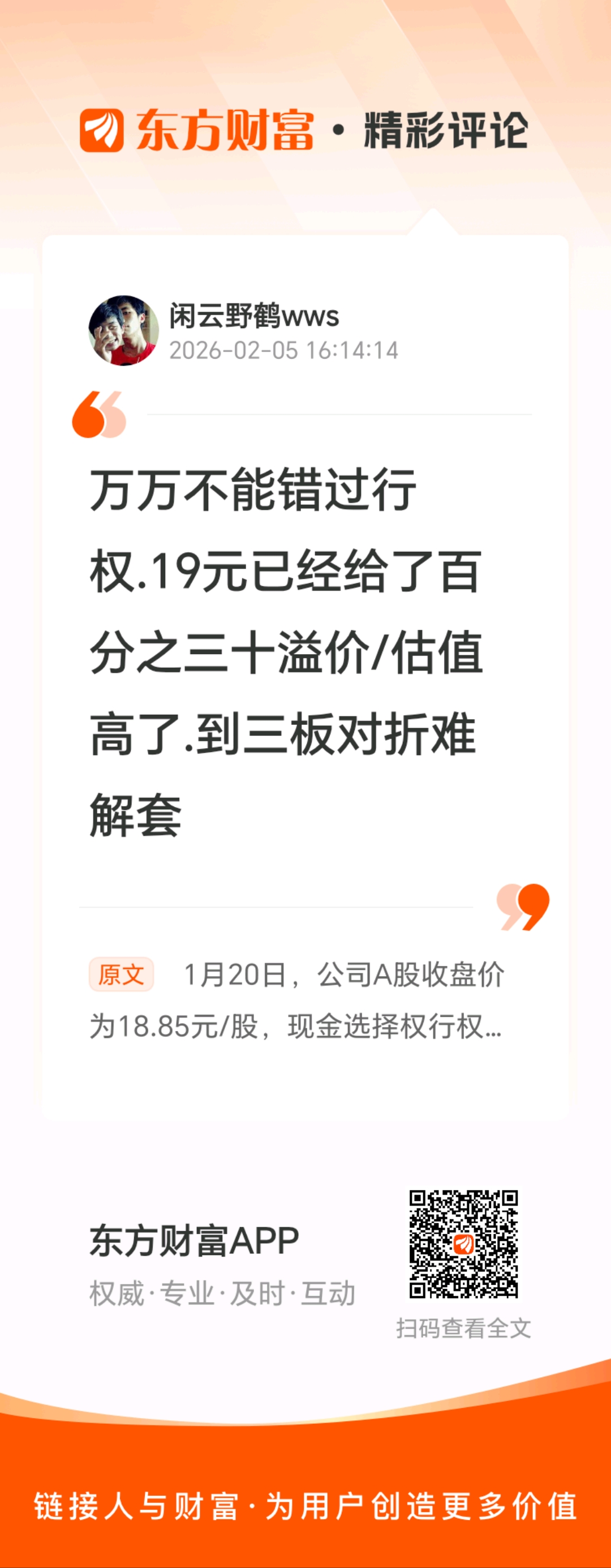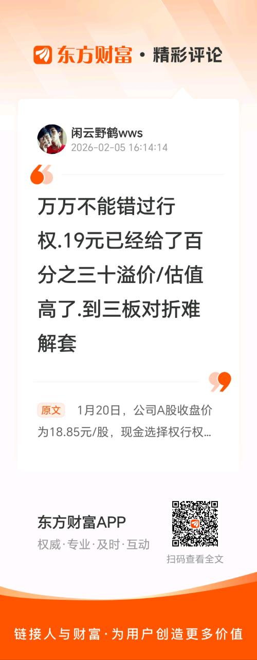 温馨提示: 1.根据《证券法》规定,禁止编造、传播虚假信息或者误导性信息,扰乱证券市场;2.用户在本社区发表的所有资料、言论等仅代表个人观点,与本网站立场无关,不对您构成任何投资建议。用户应基于自己的独立判断,自行决定证券投资并承担相应风险。《东方财富社区管理规定》
