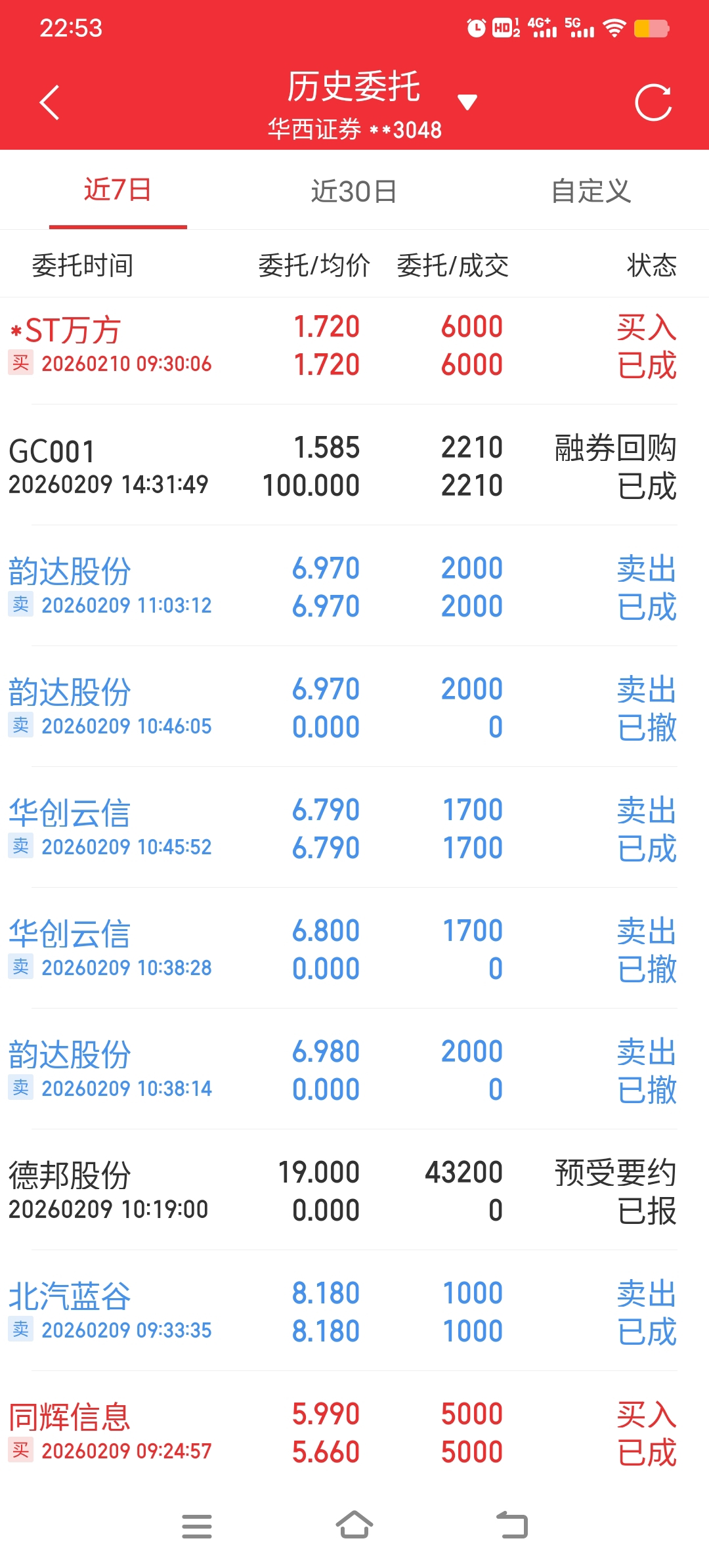 $德邦股份(SH603056)$ 持有42300股,但是申报的时候43200股,现在这笔单一直处于预受要约已报状态,另外,持仓数量一直是显示42300股,昨天晚上后可用股数一直为0,请问这是不是申报成功了?