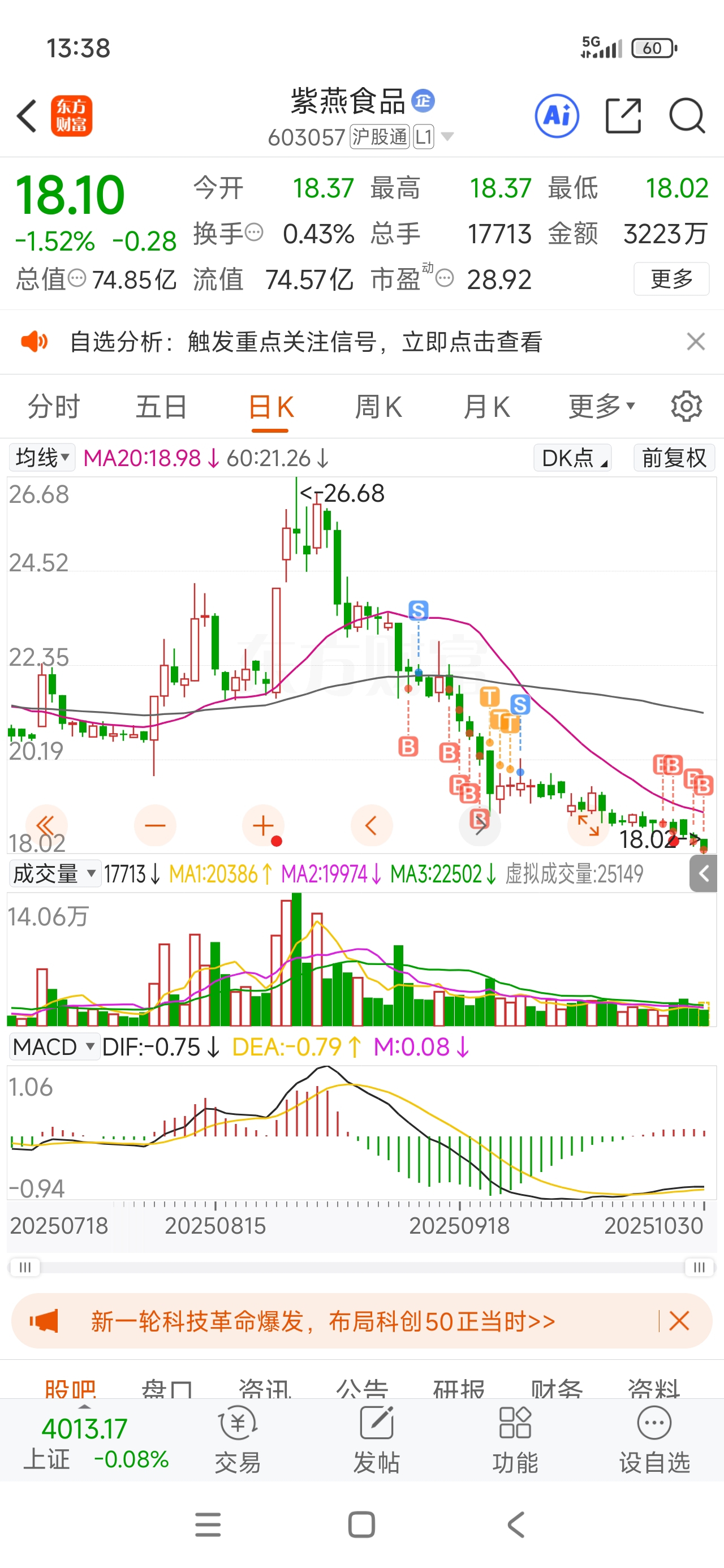 $紫燕食品(SH603057)$ 无语#股市怎么看#