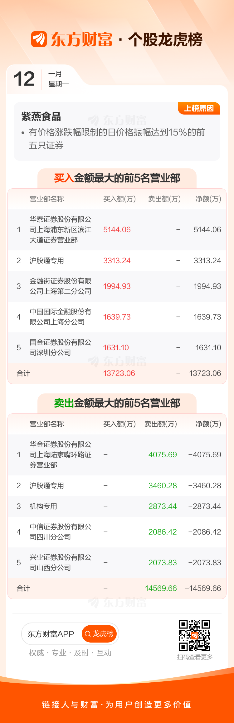 紫燕食品(603057)龙虎榜数据(01-12)