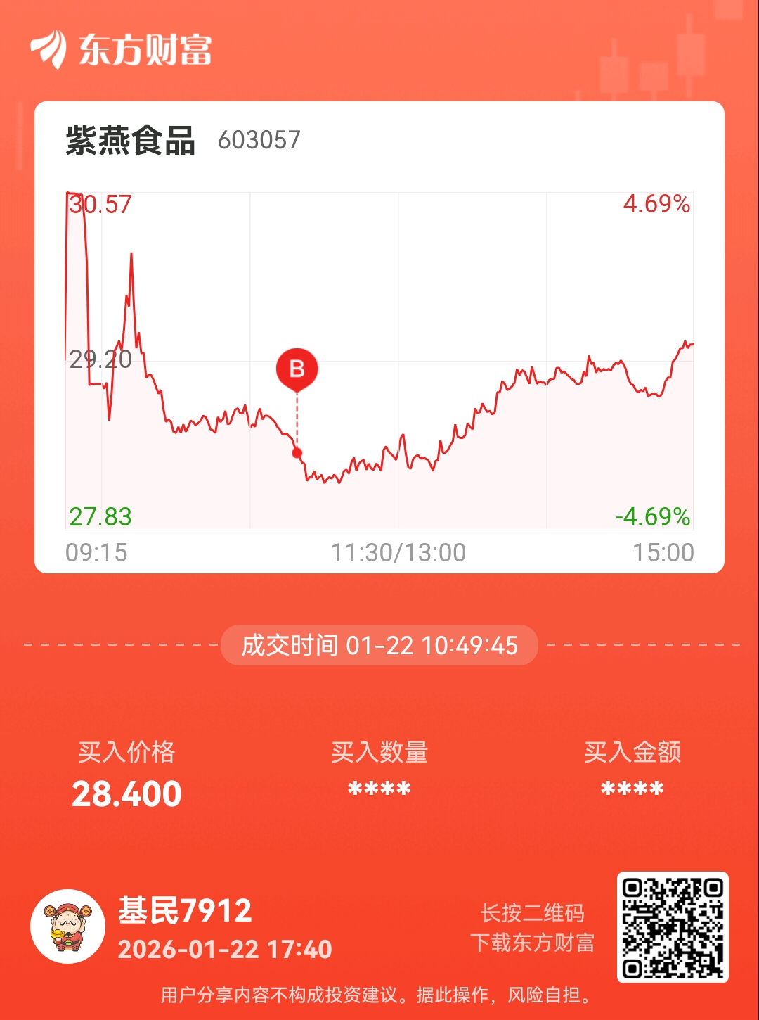 温馨提示: 1.根据《证券法》规定,禁止编造、传播虚假信息或者误导性信息,扰乱证券市场;2.用户在本社区发表的所有资料、言论等仅代表个人观点,与本网站立场无关,不对您构成任何投资建议。用户应基于自己的独立判断,自行决定证券投资并承担相应风险。《东方财富社区管理规定》