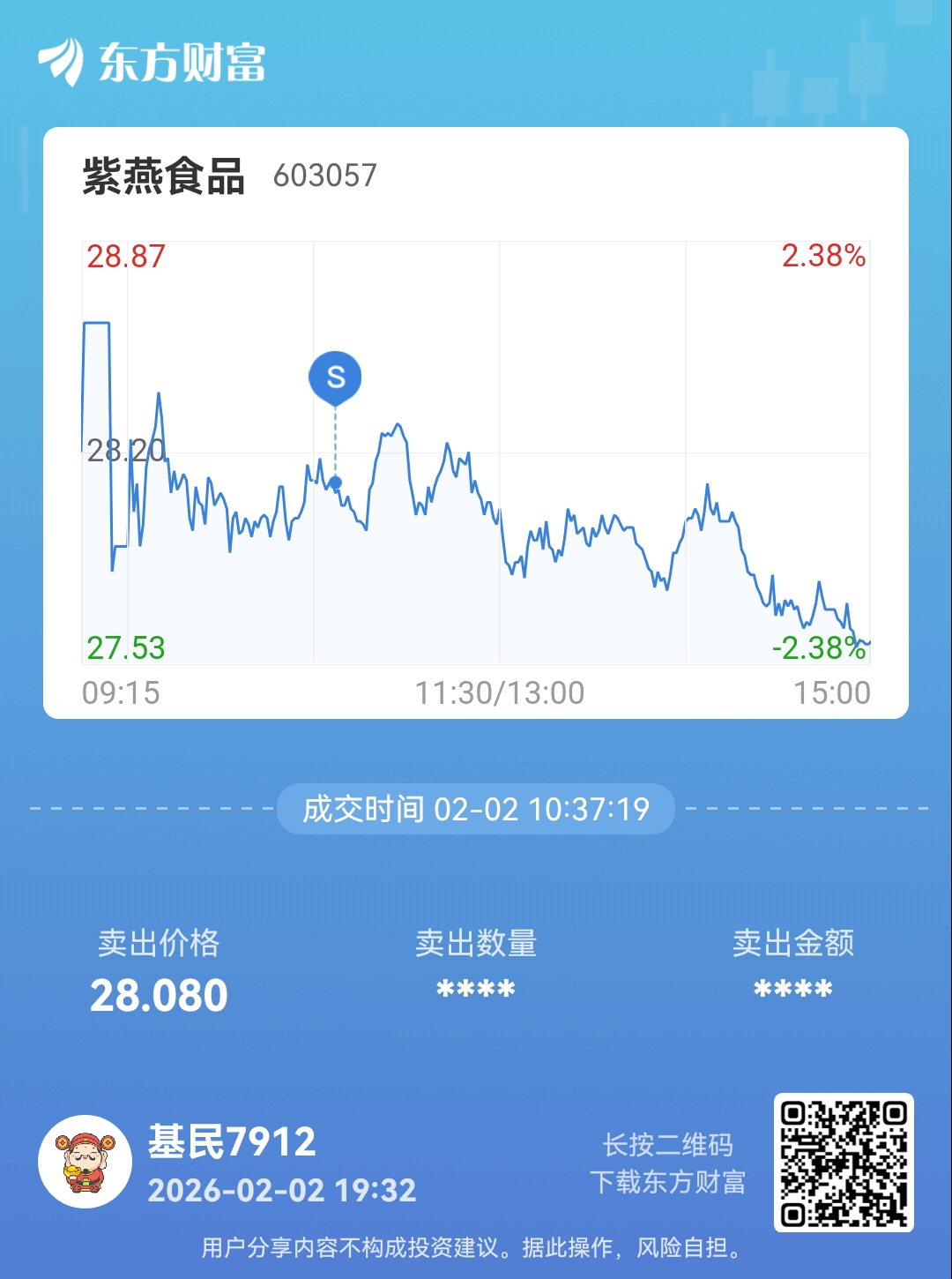 温馨提示: 1.根据《证券法》规定,禁止编造、传播虚假信息或者误导性信息,扰乱证券市场;2.用户在本社区发表的所有资料、言论等仅代表个人观点,与本网站立场无关,不对您构成任何投资建议。用户应基于自己的独立判断,自行决定证券投资并承担相应风险。《东方财富社区管理规定》