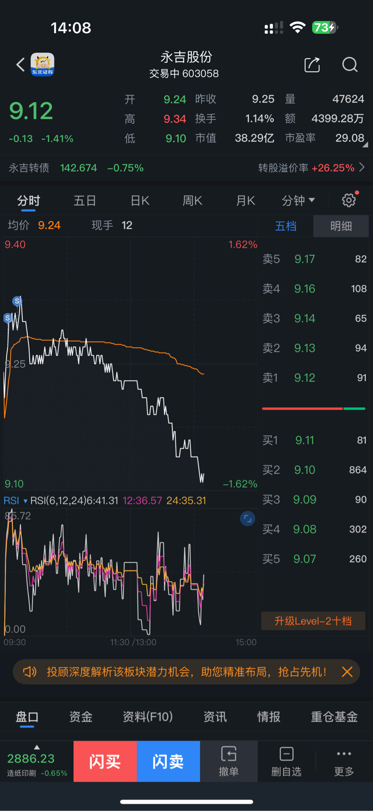 $永吉股份(SH603058)$ 今天开盘跑了,尾盘也没有接回来,先和永吉说拜拜了,短时间不买它了
