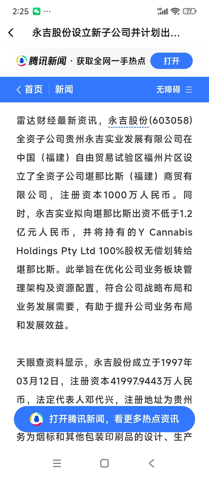 $永吉股份(SH603058)$ 全资子公司贵州永吉实业发展有限公司在中国(福建)自由贸易试验区福州片区设立了全资子公司堪那比斯(福建)商贸有限公司,助力添加福建板块,加大消费