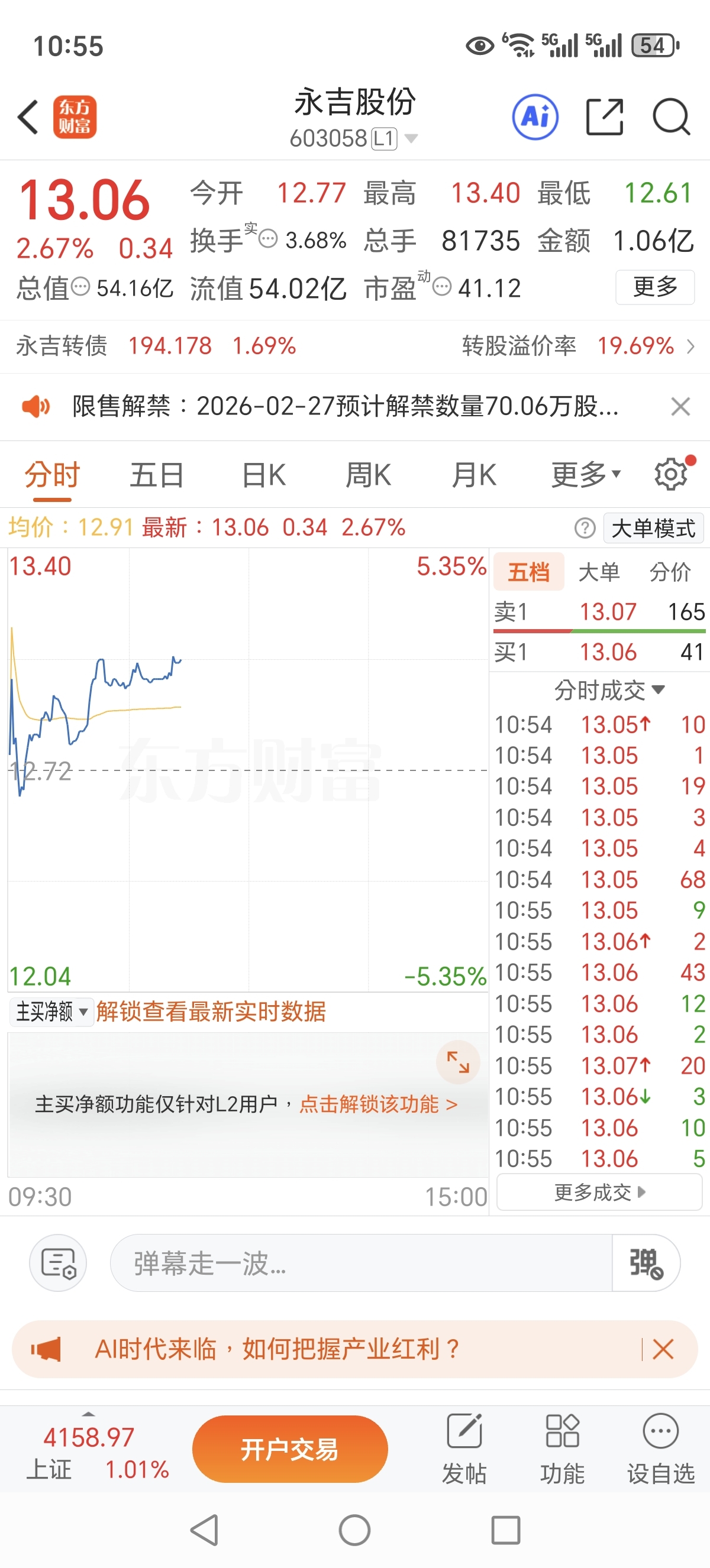 $永吉股份(SH603058)$ 今日最高13.40???哪儿来的13.40啊?