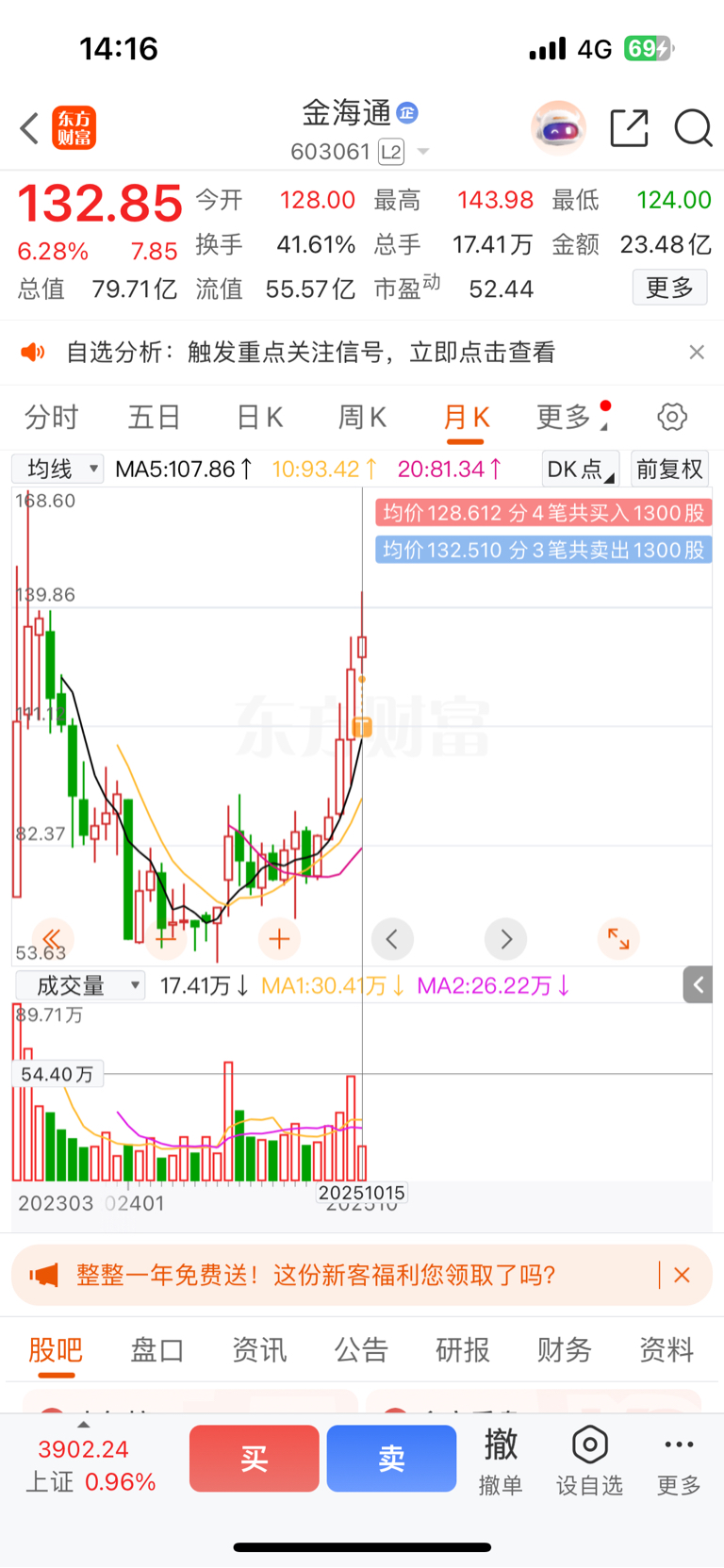 $金海通(SH603061)$ 龙头首阴,可惜拿不住。