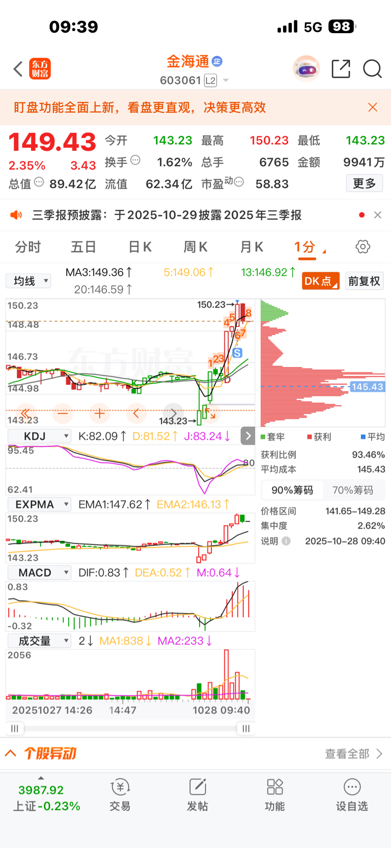$金海通(SH603061)$ 卖了23