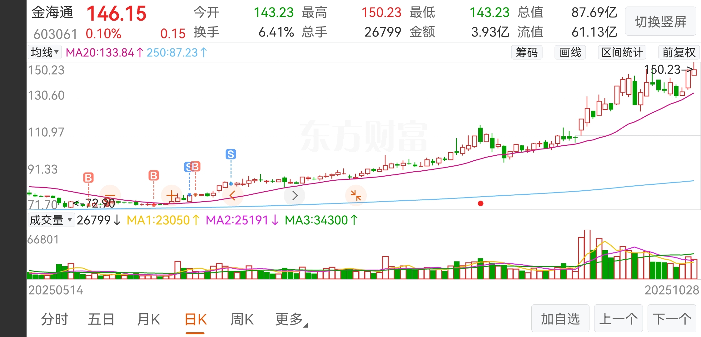 $金海通(SH603061)$ 苦不苦,问问自己这个二百五,。
