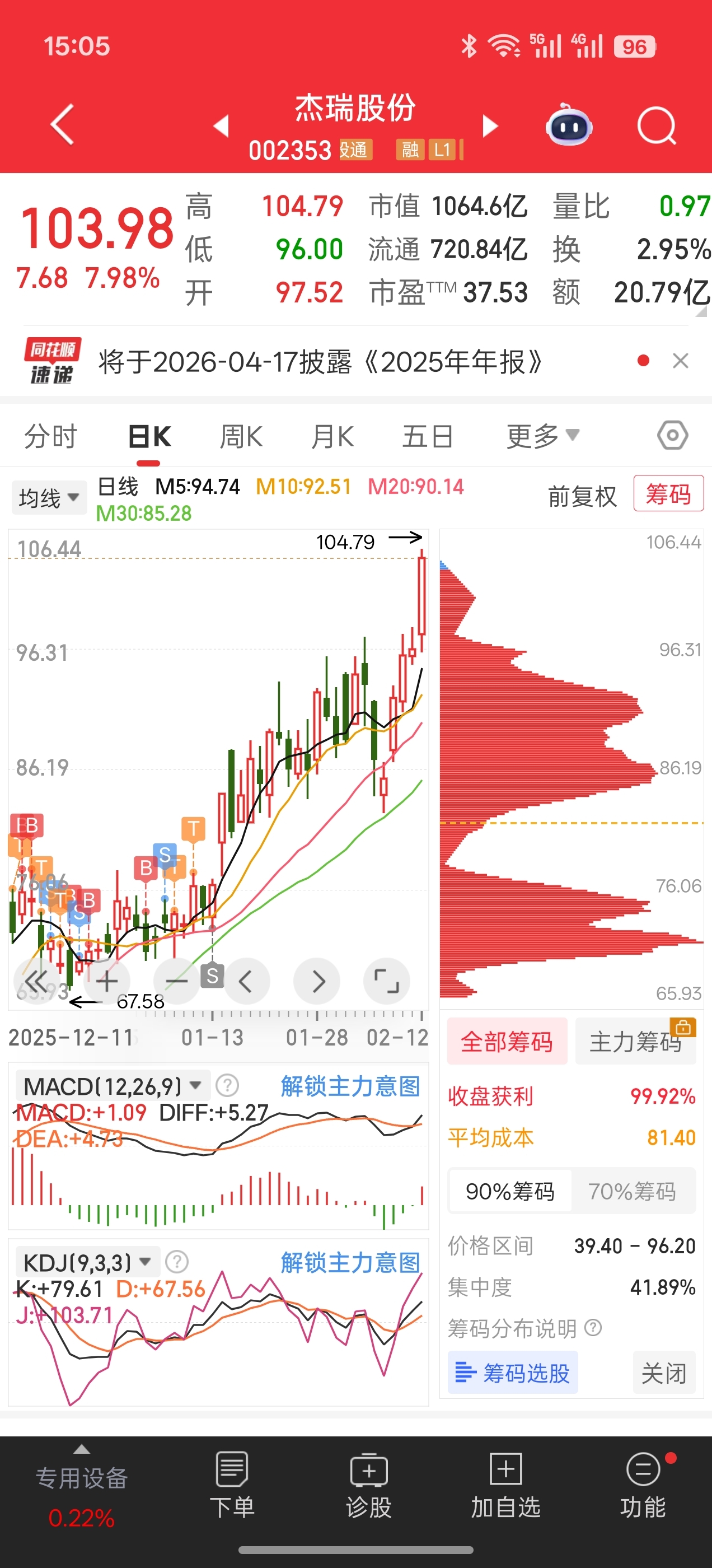 $金海通(SH603061)$ $杰瑞股份(SZ002353)$ 明天跟年后应该还要拉,今天早上给不贪心出去,下午就下杀瞎把贪心的也出去。我发现这些庄都喜欢让大部分散户养成害怕或者做t的思维,一旦卖飞也舍不得买回来了。。我的杰瑞好痛,一卖你就涨停,赚了芝麻错过大肉!
