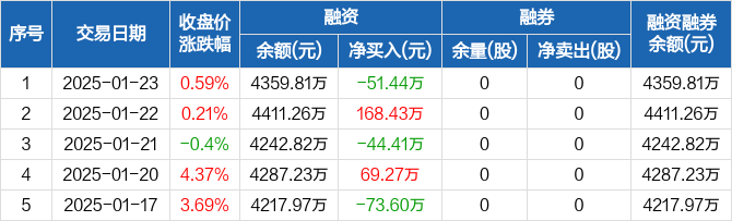 麦加芯彩:融资净偿还51.44万元,融资余额4359.81万元(01-23)