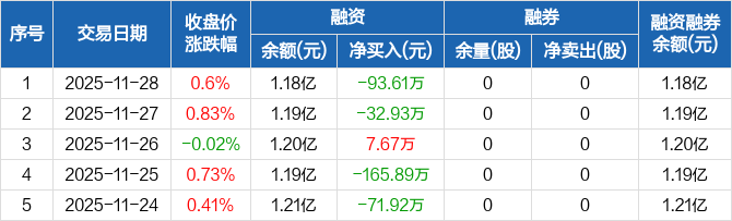 麦加芯彩:融资净偿还93.61万元,融资余额1.18亿元(11-28)