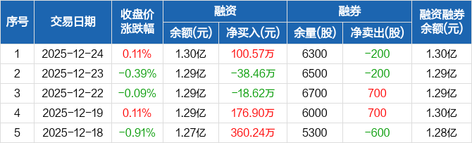 麦加芯彩:融资余额1.3亿元,创近一年新高(12-24)