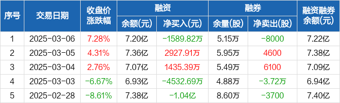禾望电气:融资净偿还1589.82万元,融资余额7.2亿元(03-06)