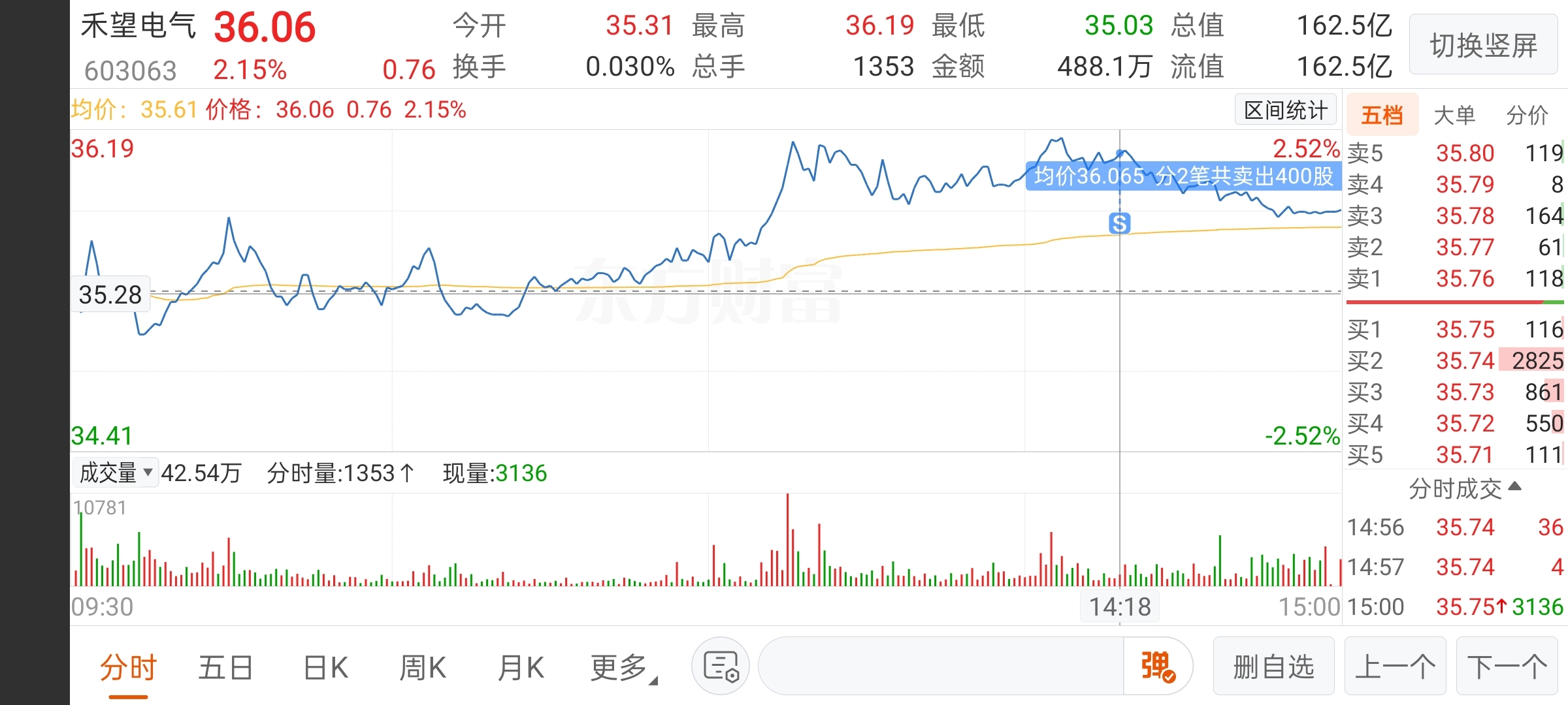 $禾望电气(SH603063)$ #炒股日记# #复盘记录# #股市怎么看# #强势机会# #实盘记录# 不好意思是我砸盘了