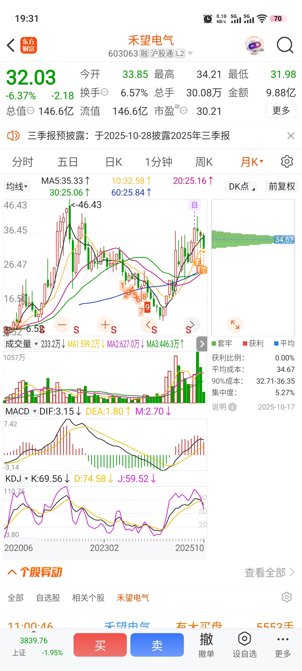 $禾望电气(SH603063)$ 月线开始埋人了吗?