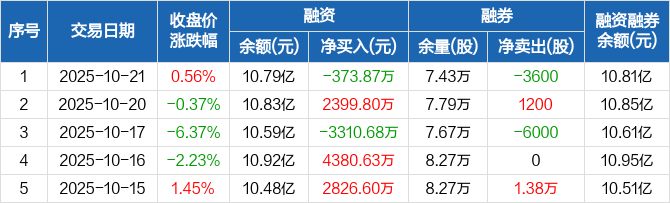 禾望电气:融资净偿还373.87万元,融资余额10.79亿元(10-21)