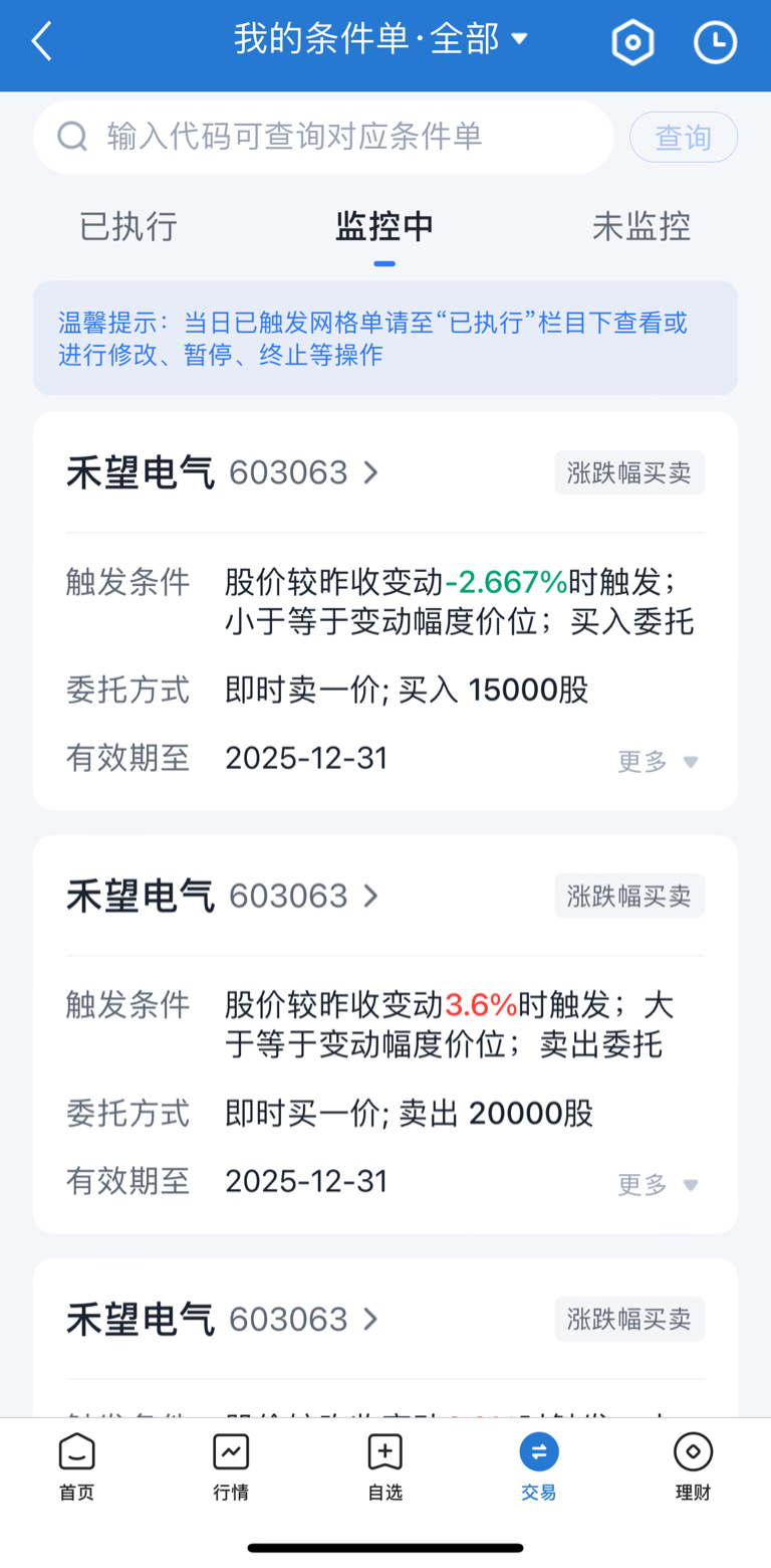 $禾望电气(SH603063)$ 做好条件单,自动交易