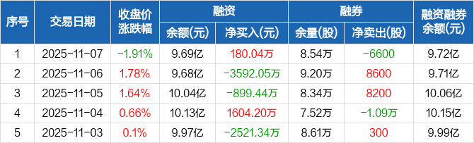 禾望电气:融资净买入180.04万元,融资余额9.69亿元(11-07)
