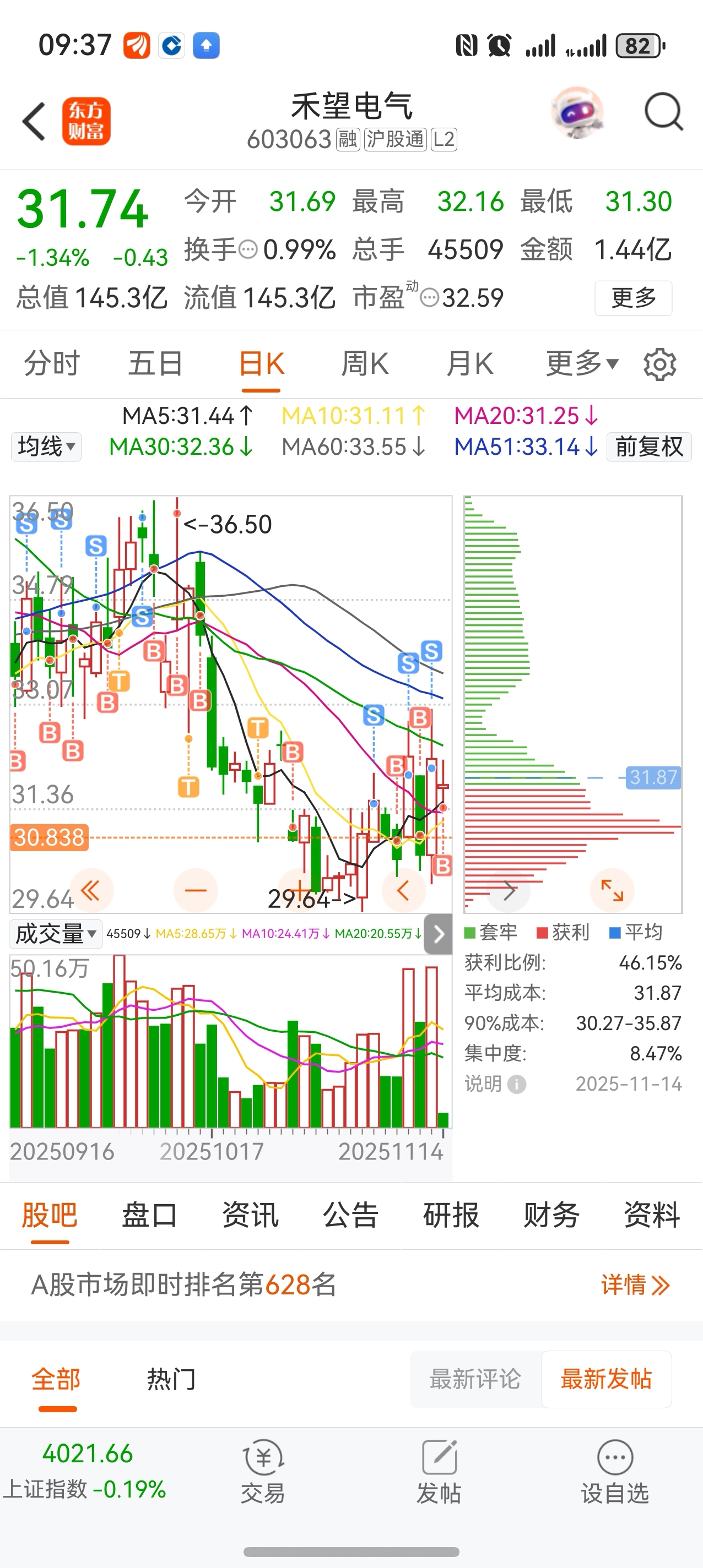 $禾望电气(SH603063)$ 这个股还是不错的,天天给机会做t,最初买入36.8,现在成本30块了,有点开心,今天31.33又买进去了,希望还能下来点。