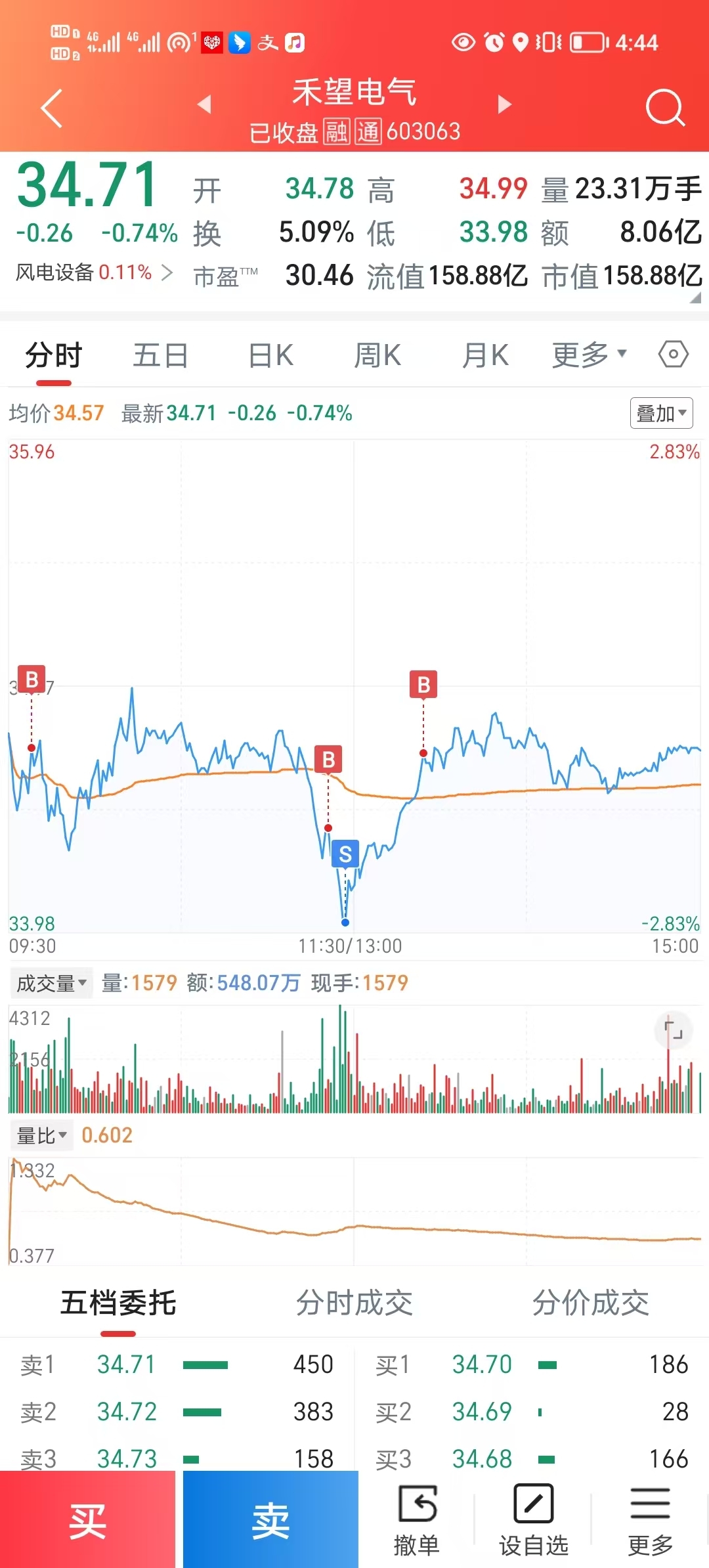 $禾望电气(SH603063)$ 哎呀,真是气死我了,买了10万,卖了10万,又买了5万,一天折腾下来,亏了接近6000