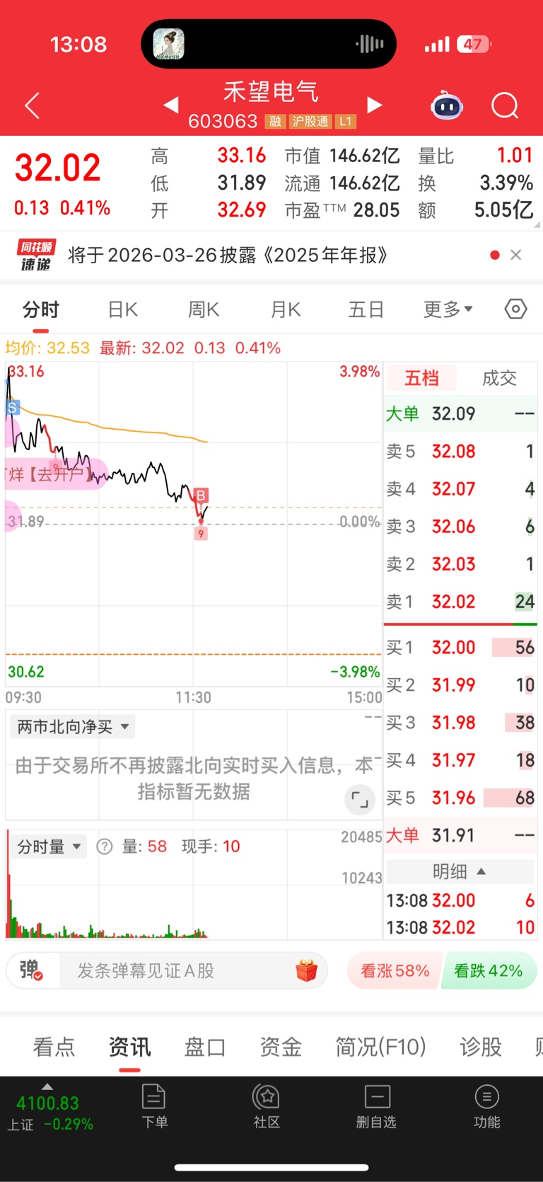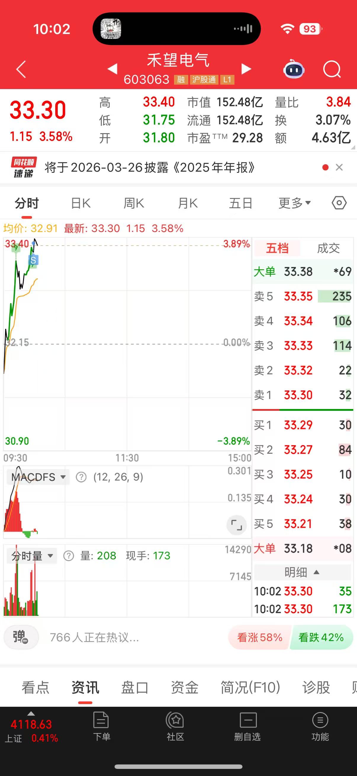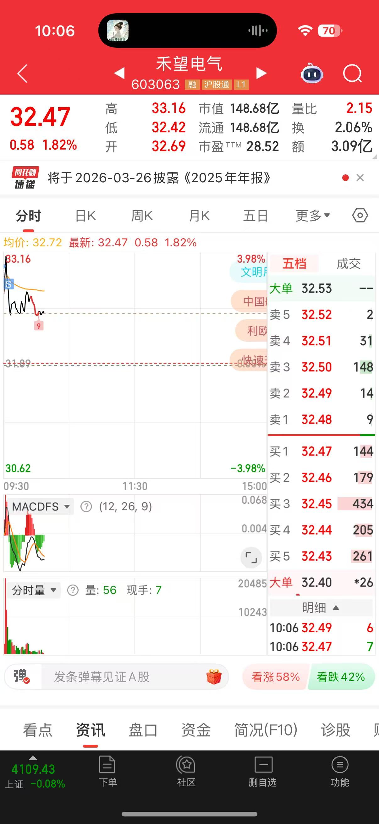 口决都说了,早上大涨要先出,这样后面无论是做T还是换股都好操作。33出了,挂个31.91看看能不能接回来,不能也不强求,毕竟周五了