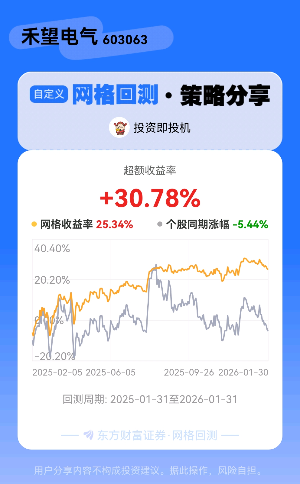 #条件单交流# #网格交易晒单#我使用网格交易回测了最关心的个股,朋友们走过路过看看我的收益~$禾望电气(SH603063)$