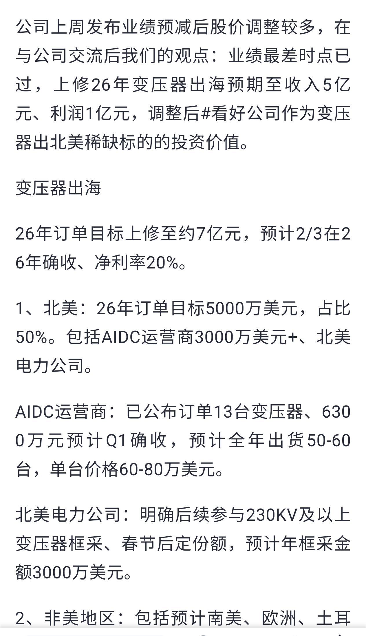 这家公司已经拿到北美变压器订单,禾望电气还处于研发阶段,这怎么理解呢