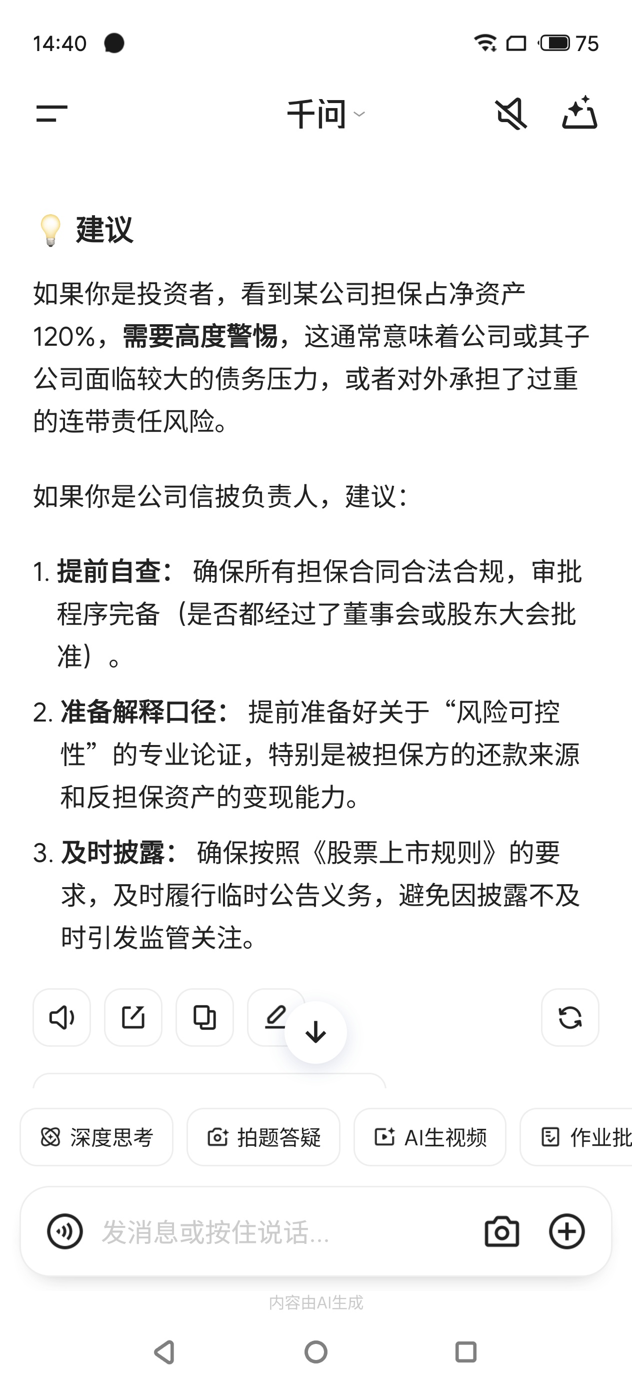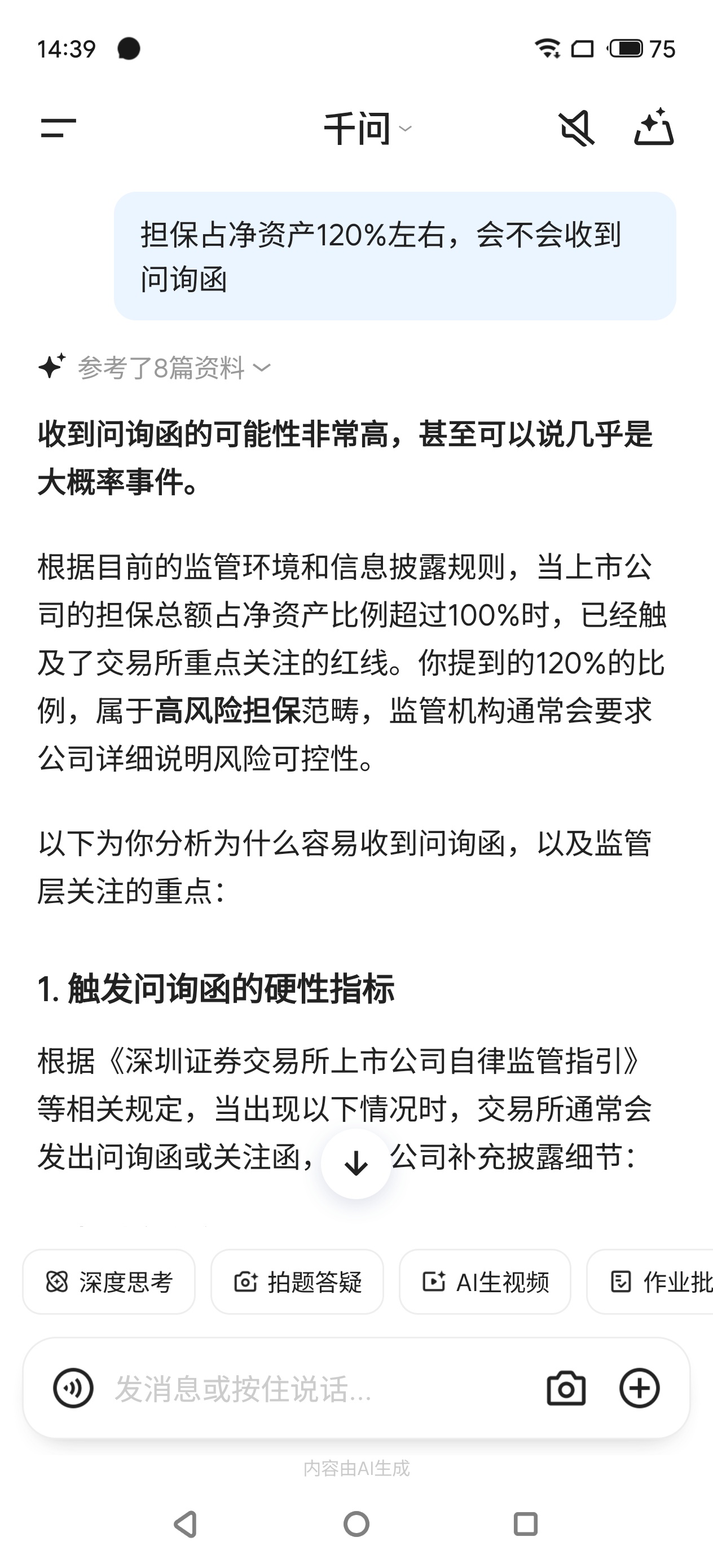 $禾望电气(SH603063)$ 担保占净资产的120%左右,会不会有问询函呢