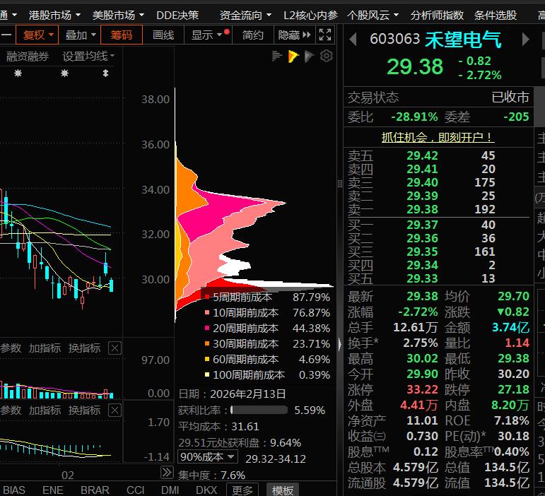 截至今日收盘,市场平均成本31.61元,短期套牢盘超过94%。节后若继续下跌空间也很有限,给机会继续买入。