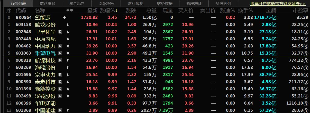 氢能概念涨停股