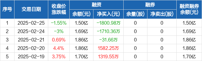 振华股份:连续3日融资净偿还累计3543万元(02-25)