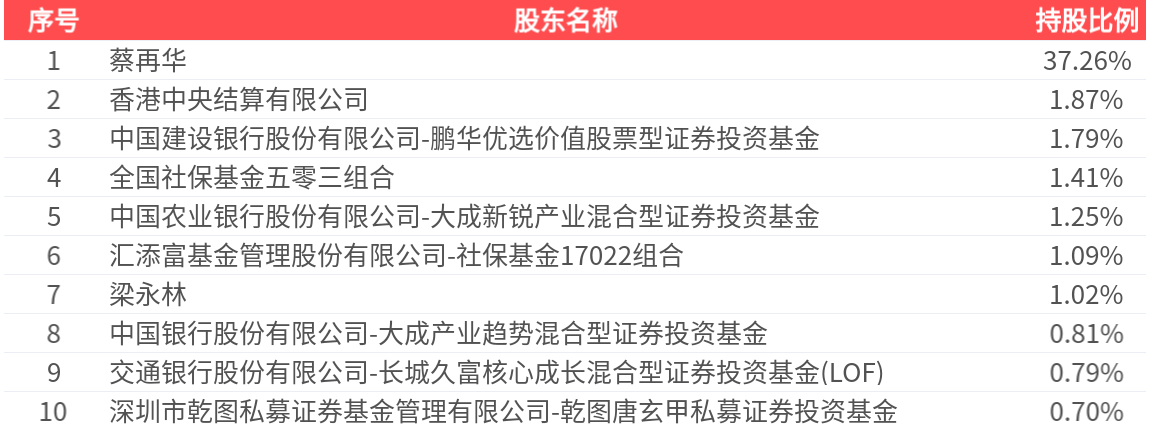 公司股东户数为2.29万户,前十大股东持股数量为3.41亿股,占总股本比例为48.00%,前十大股东持股情况如下: