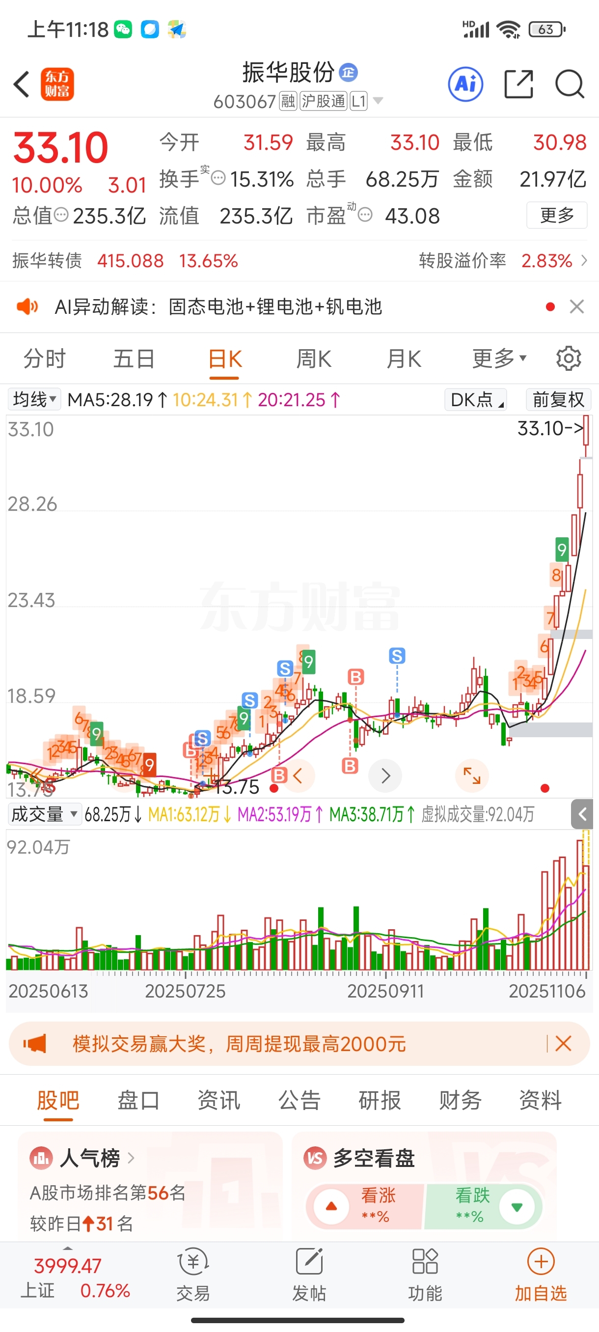 $振华股份(SH603067)$ 翻倍股我抓到了,但我不要。我就要去天台吹风